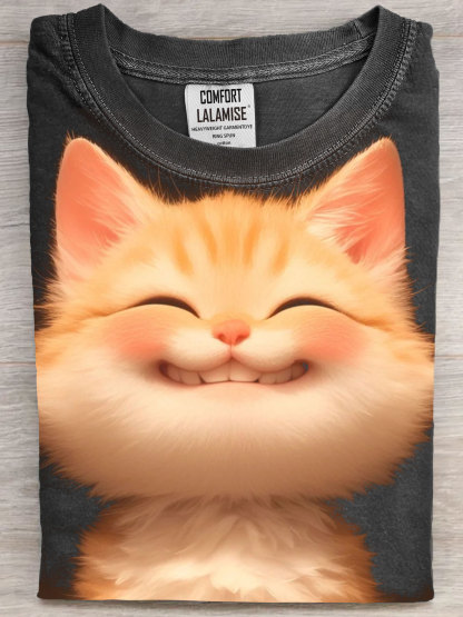 Cute Kitty Art Print Casual Short Sleeve T-shirt