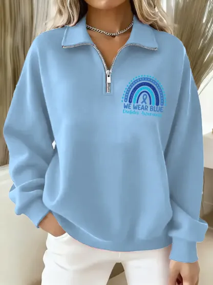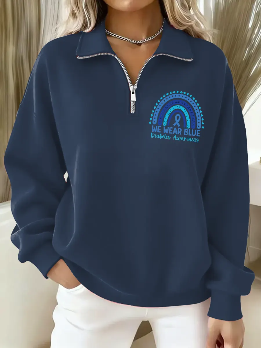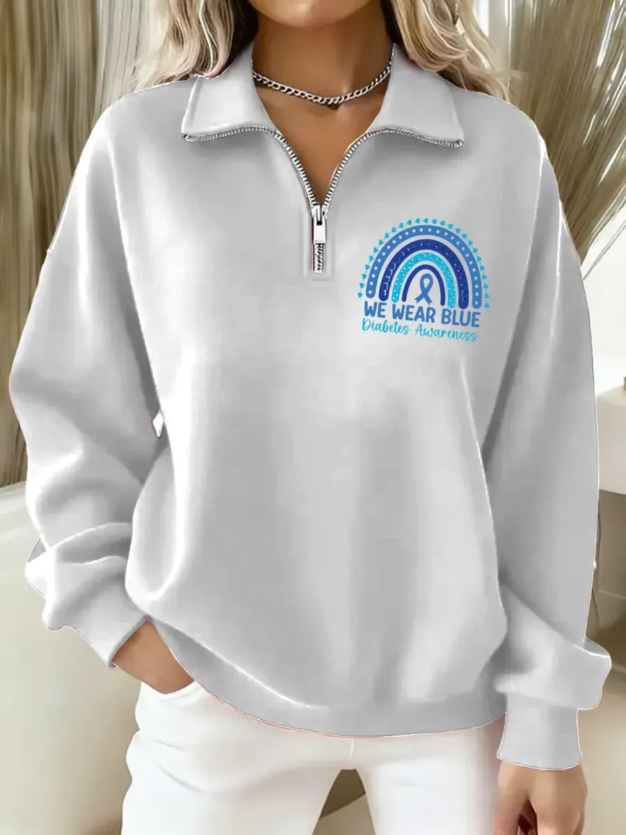 Diabetes Awareness Art Casual Long Sleeve Zip Sweatshirt