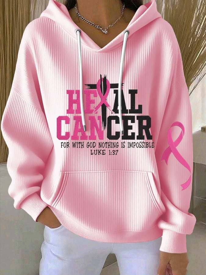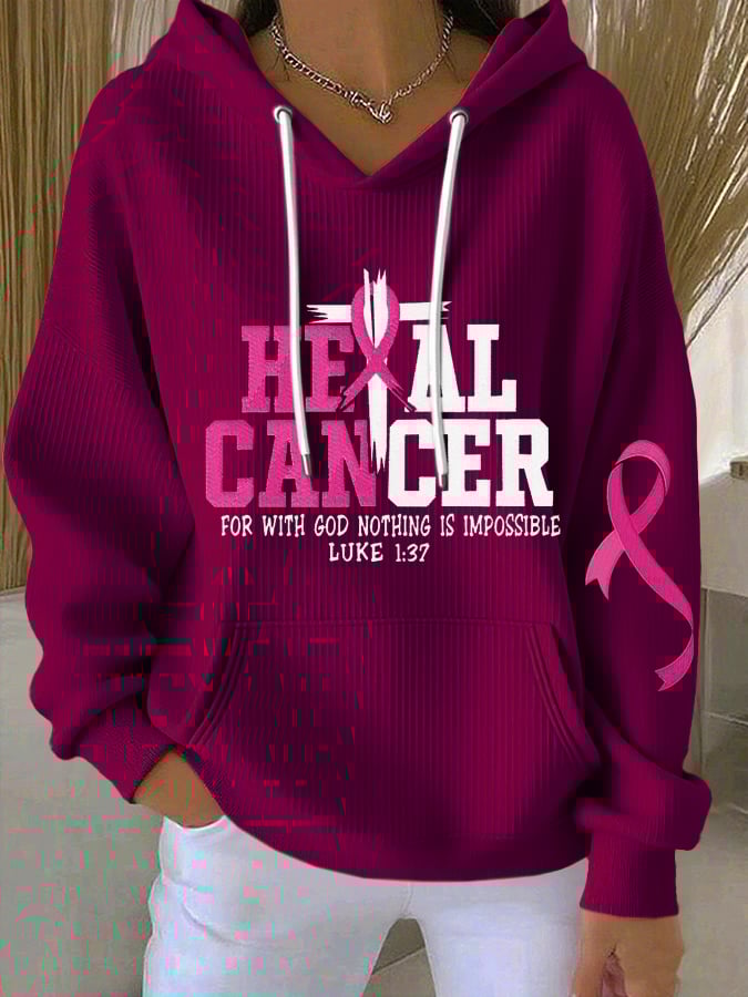 Faith God Breast Cancer Crew Neck Print Sweatshirt