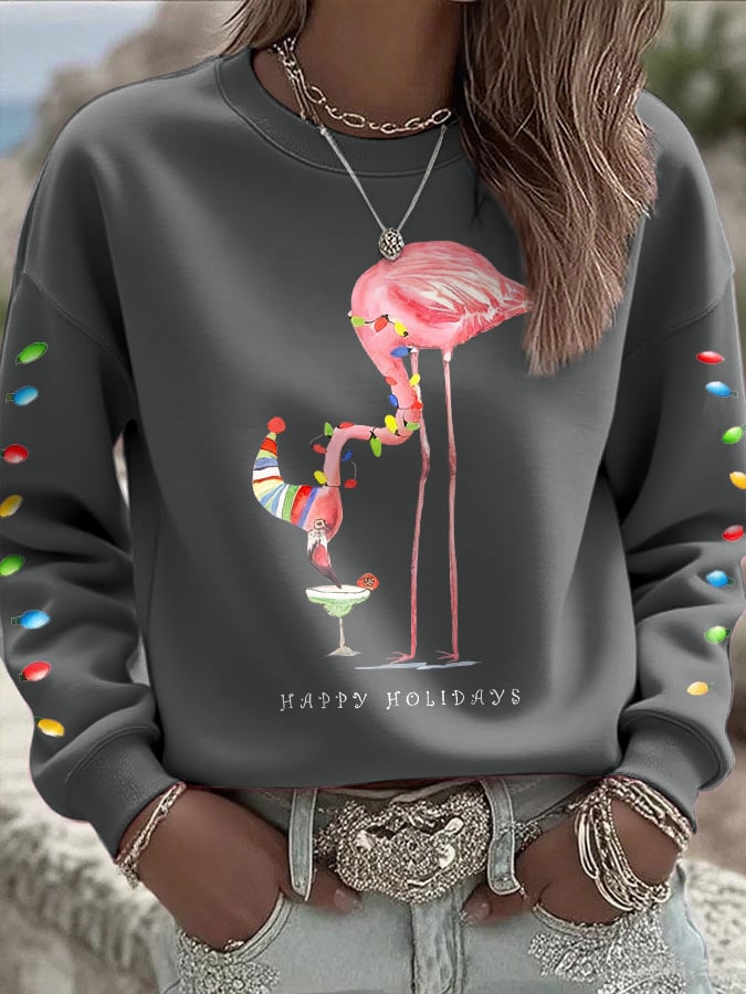 Women's Casual Christmas Pink Santa Claus Sweatshirt