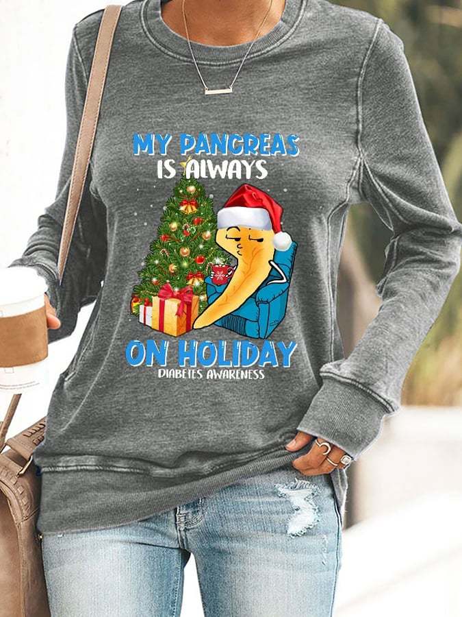 Women's Casual Diabetes Awareness Printed Long Sleeve Sweatshirt