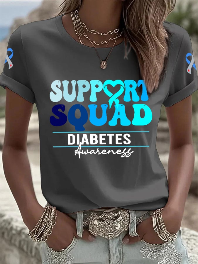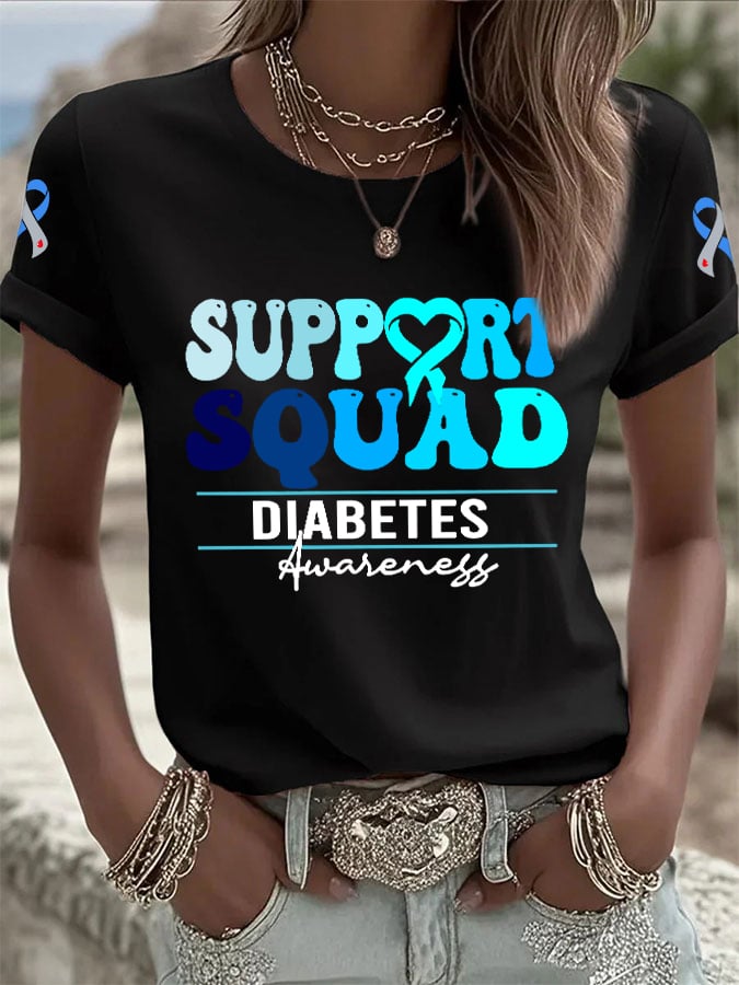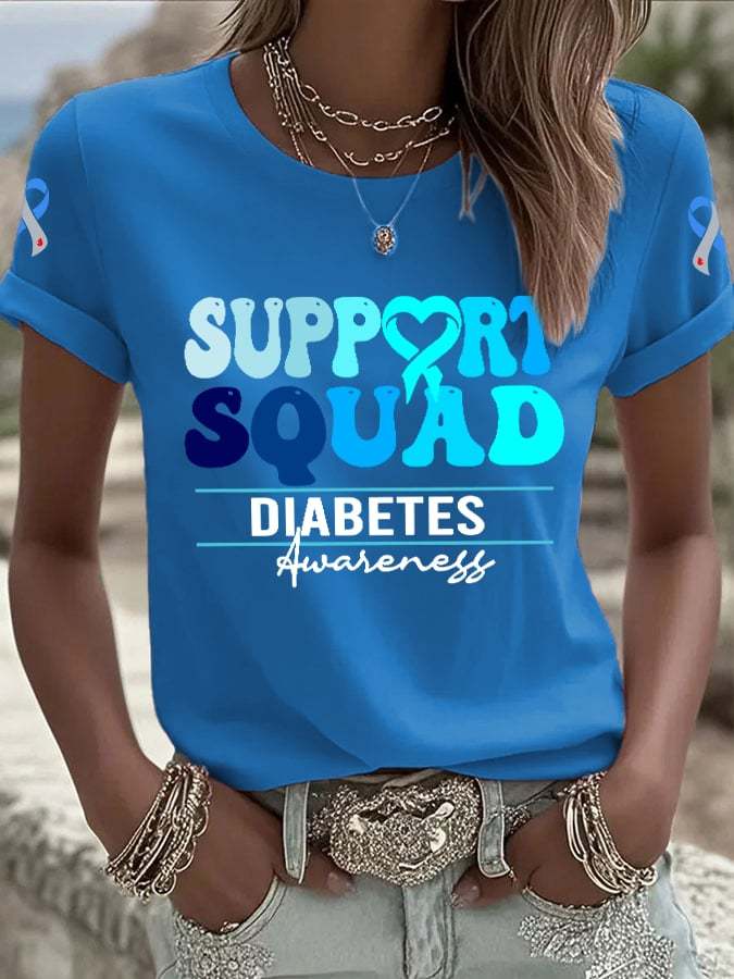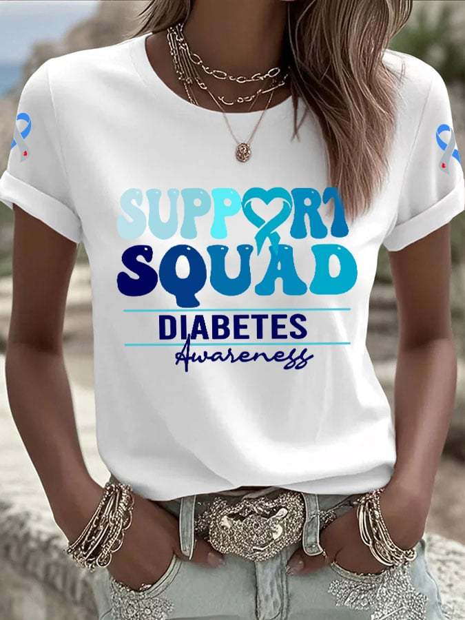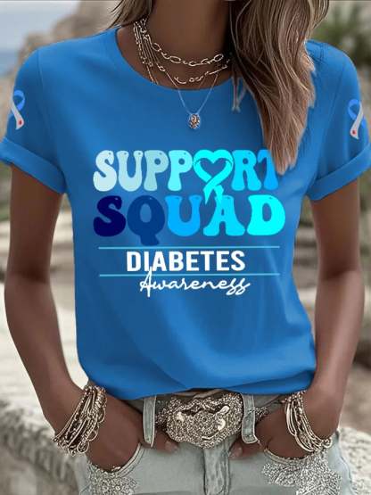 Women's “Support Squad – Diabetes Awareness” Print Round Neck T-Shirt