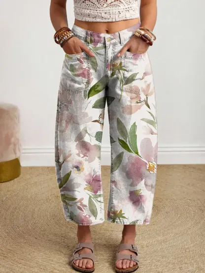 Ethnicity Pink Flowers Watercolor Women's Art Print Jeans