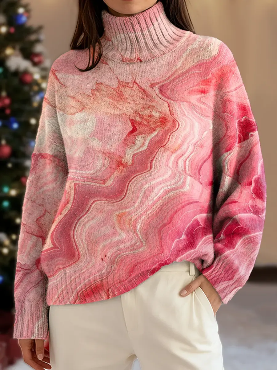 Women's Pink Art Breast Cancer Awareness Art Print Knit Turtleneck Pullover Sweater