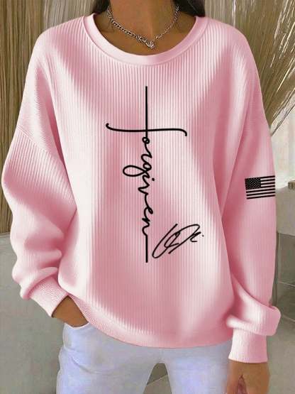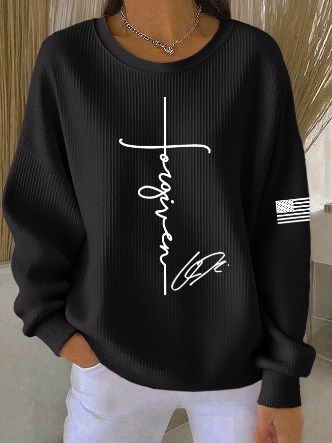 Women's Retro Forgiveness Faith Print Round Neck Sweatshirt