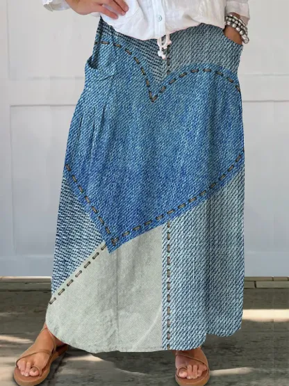 Ethnicity Patchwork Love Women's Art Print Linen Pocket Skirt