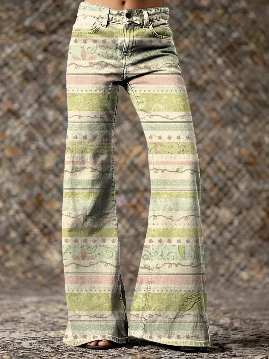 Ethnicity Stripes Flowers Women's Print Casual Wide Leg Pants