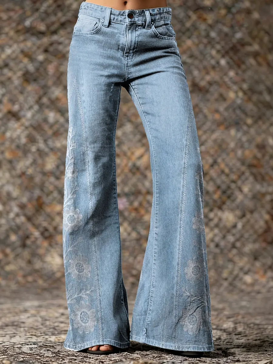 Ethnicity Texture Flowers Women's Print Casual Wide Leg Pants