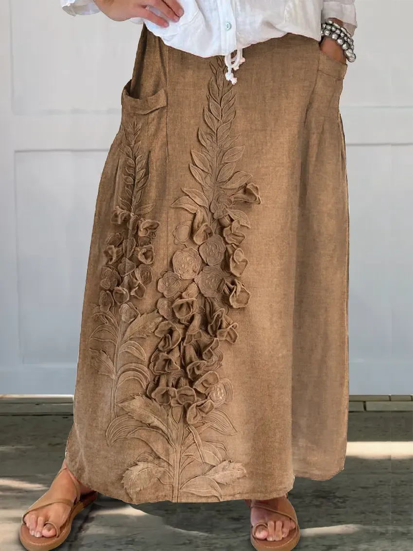 Ethnicity Texture Patchwork Flower Women's Art Print Linen Pocket Skirt