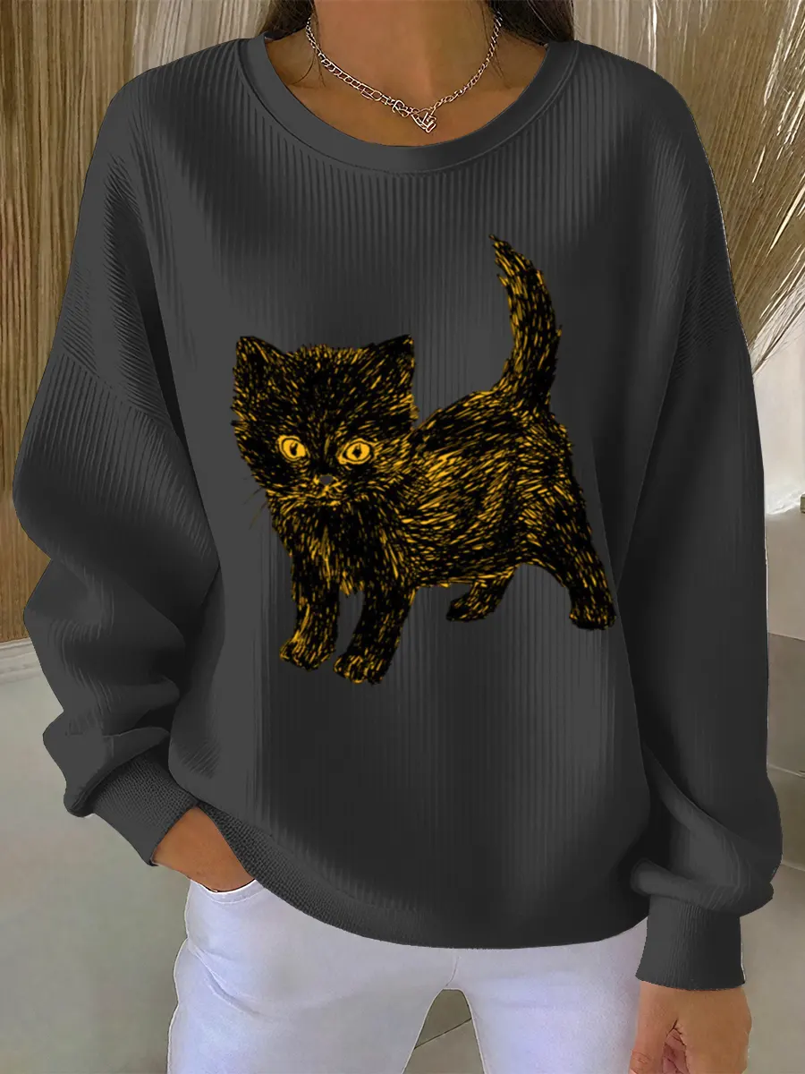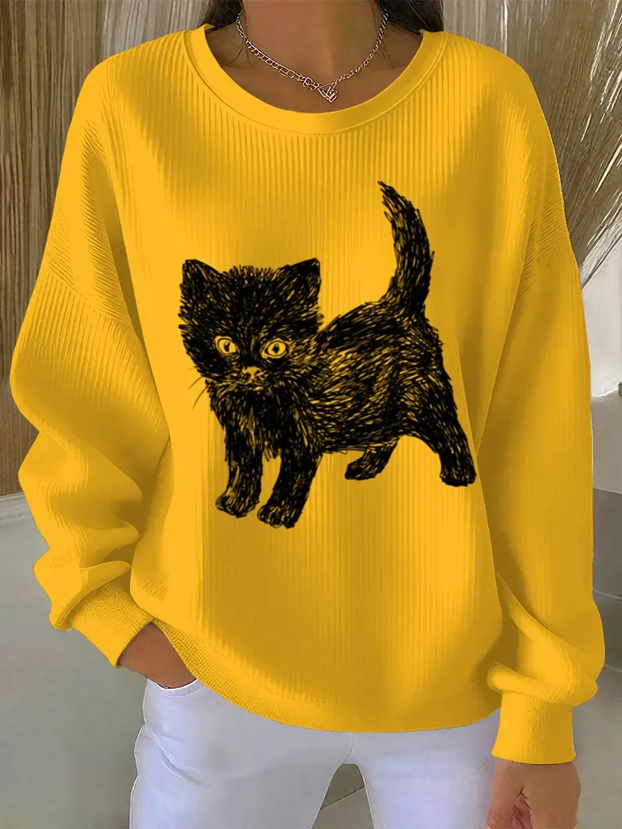 Funny Vintage Cat Art Print Casual Sweatshirt