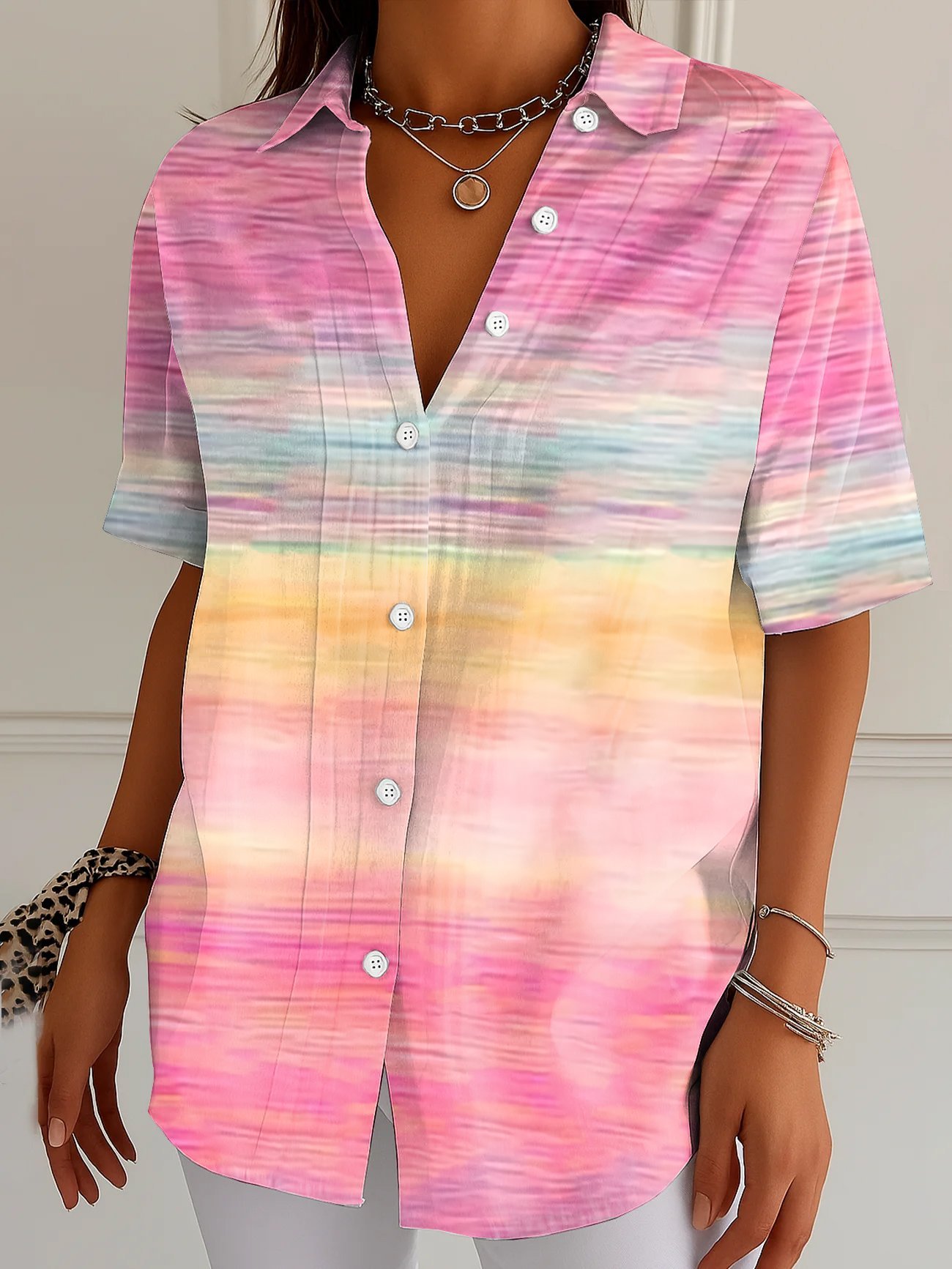 Women's Breast Cancer Awareness Print Button Design Casual Shirt