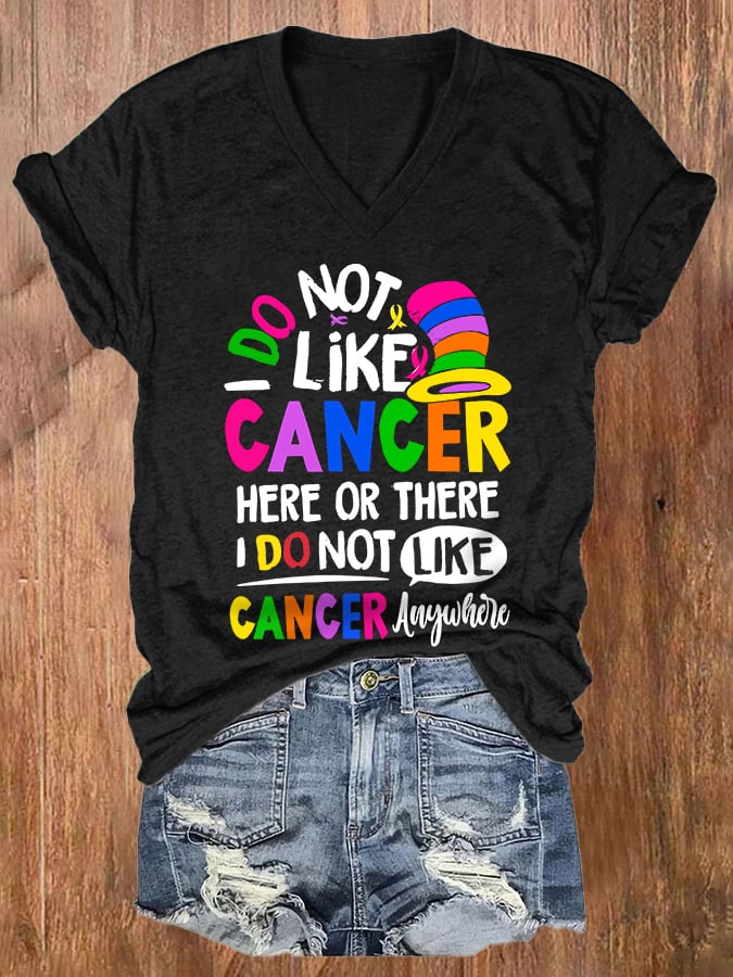 ❤️Warm Gift❤️Women's I Do Not Like Cancer Here Or There I Do Not Like Cancer Anywhere Print T-Shirt