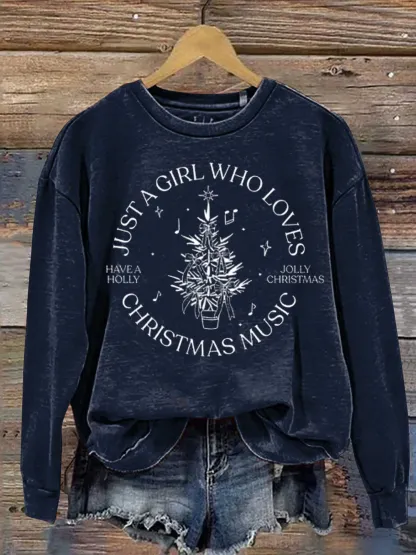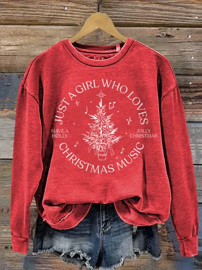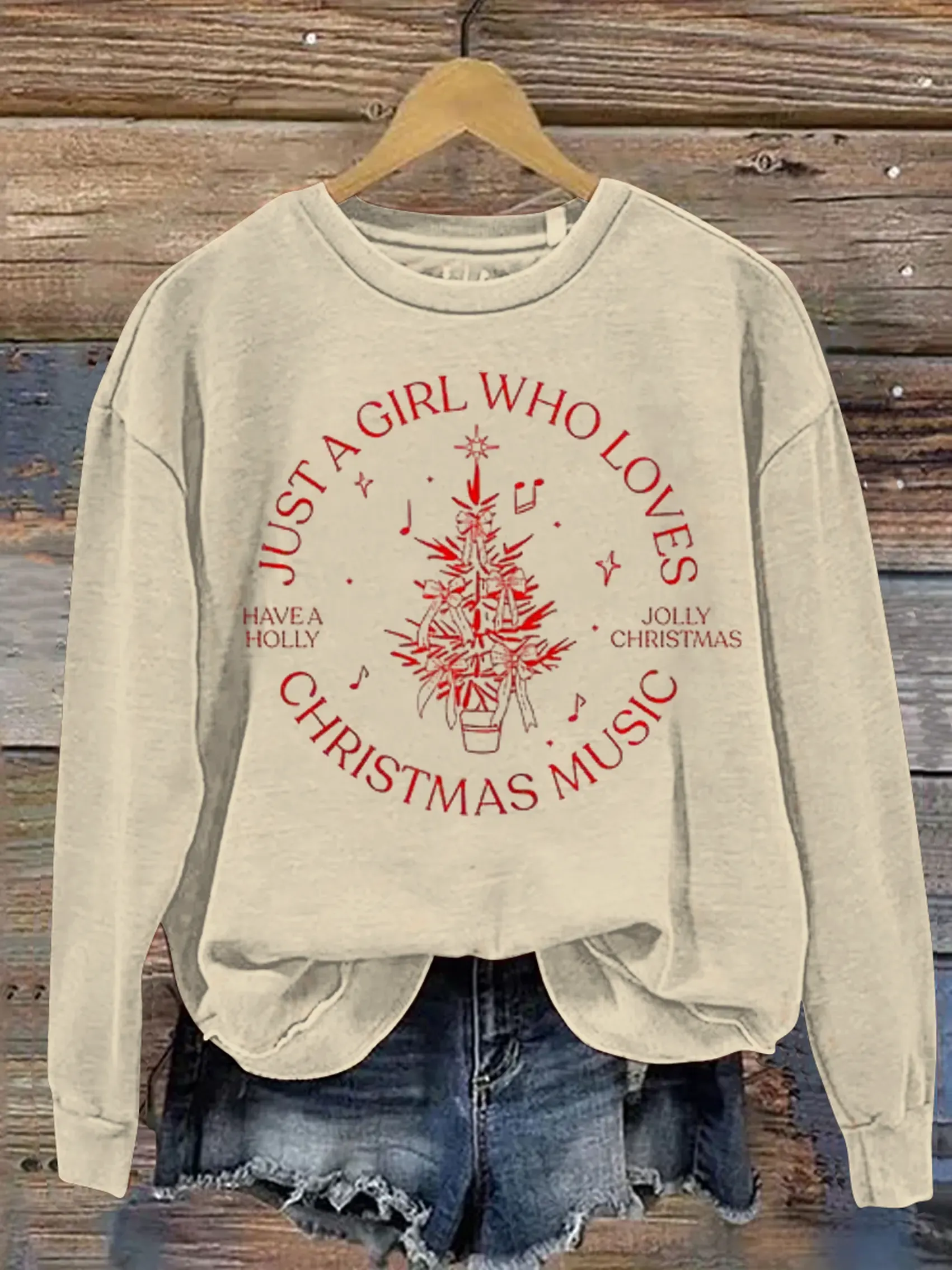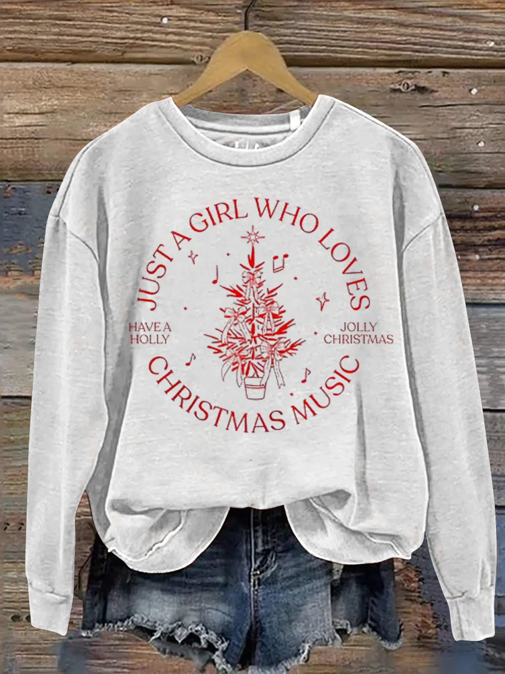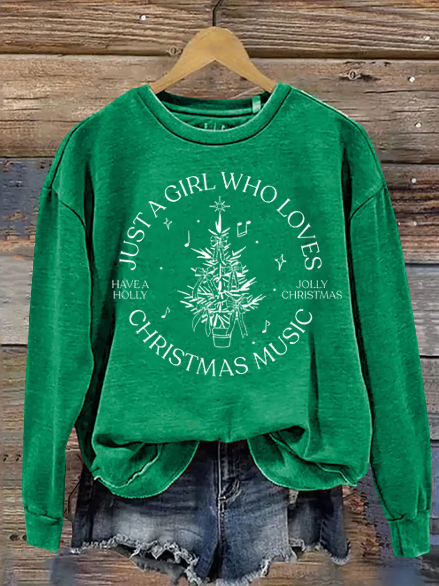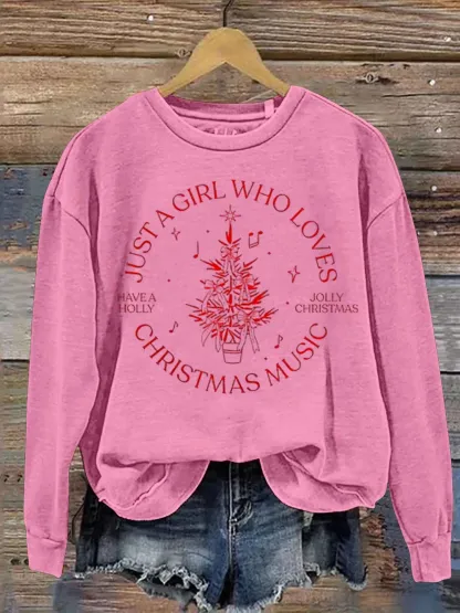 Women's Just A Girl Who Loves Christmas Music Pattern Art Print Casual Cotton Sweatshirt