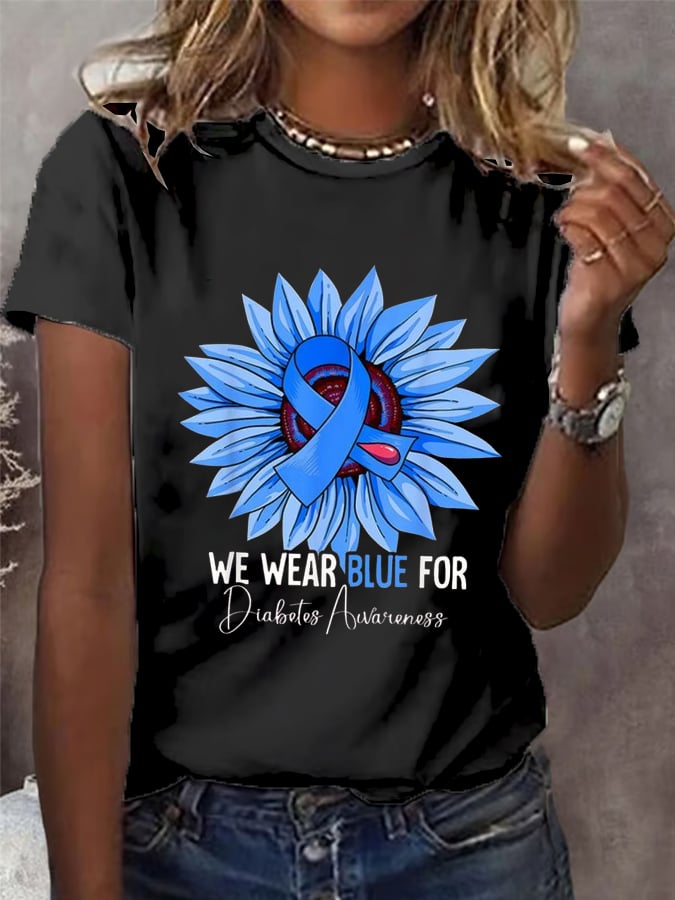 Women's We Wear Blue For Diabetes Awareness Printed Casual T-shirt