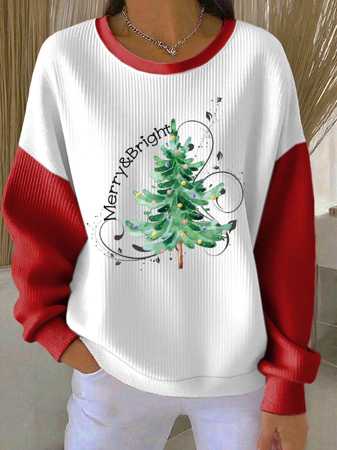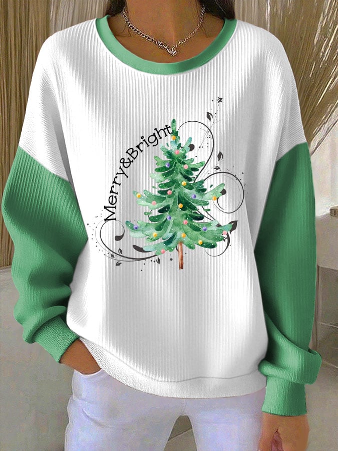 Women'S Merry and Bright Christmas Tree Print Sweatshirt