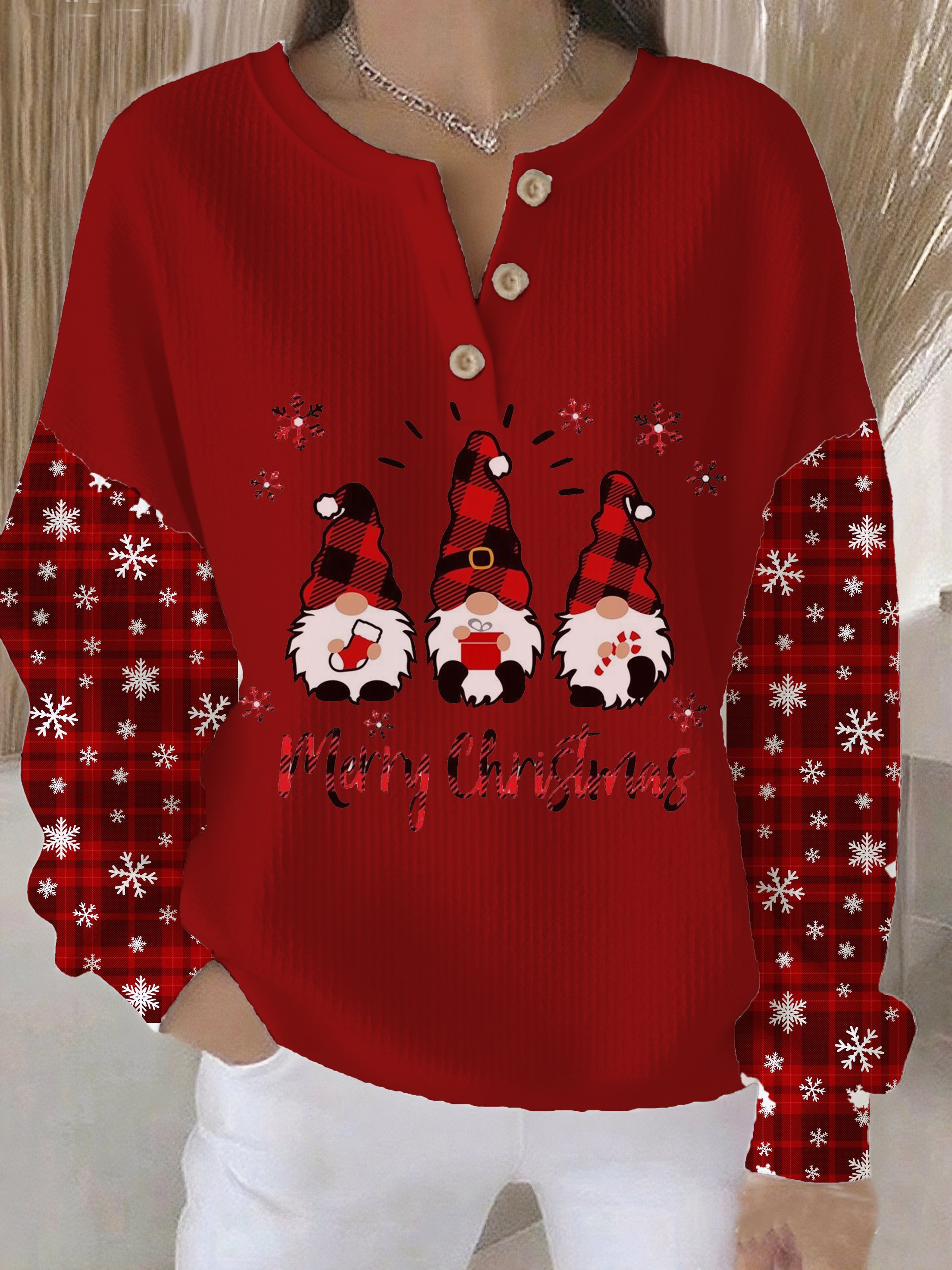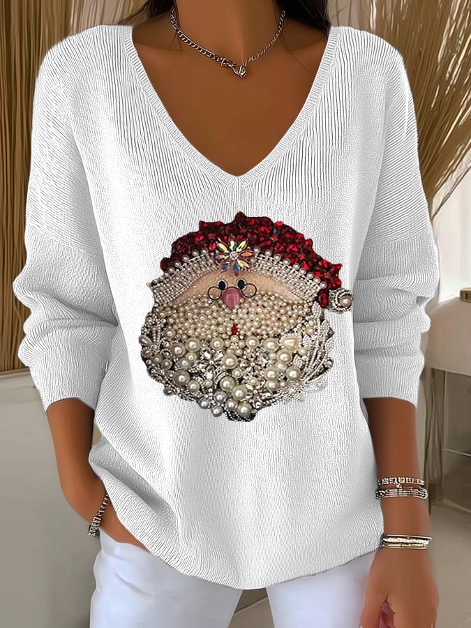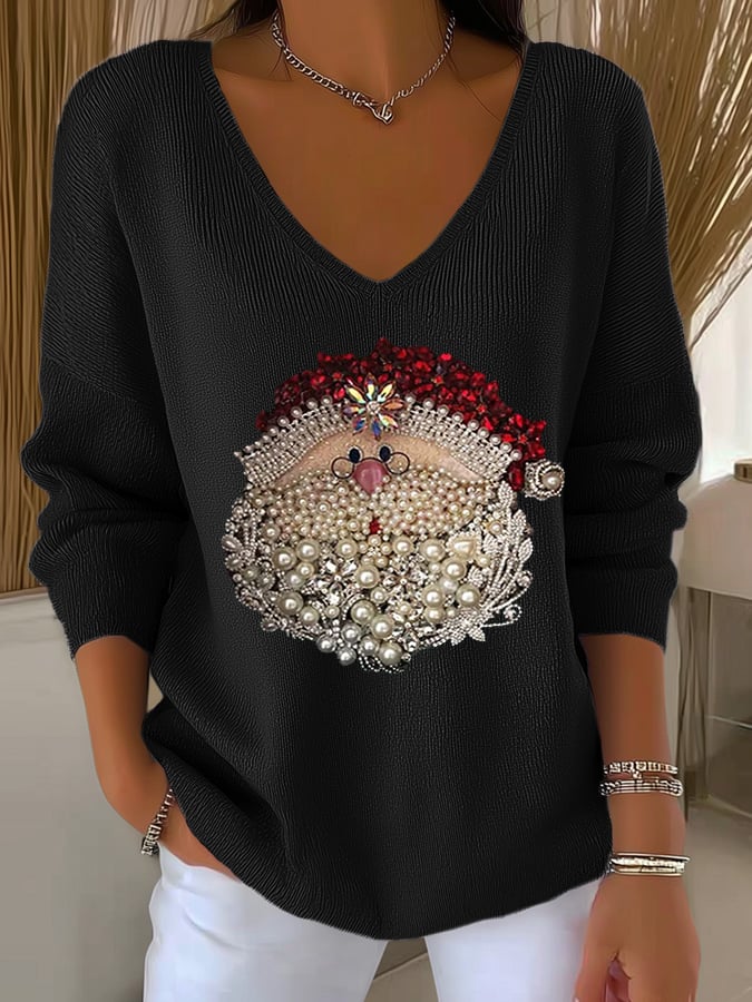 Women's Casual Christmas Print Long Sleeve Knit Top