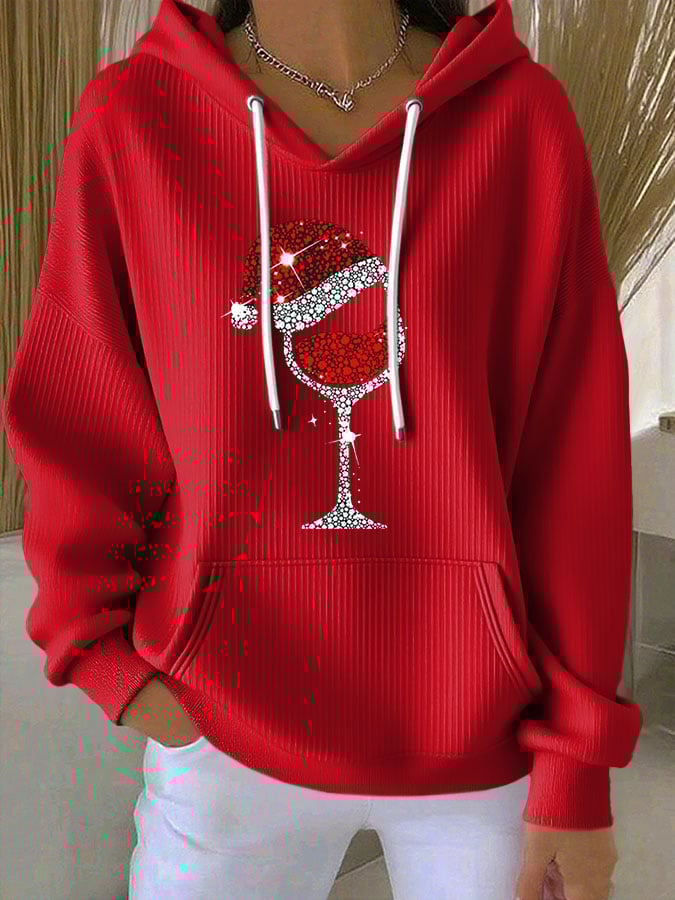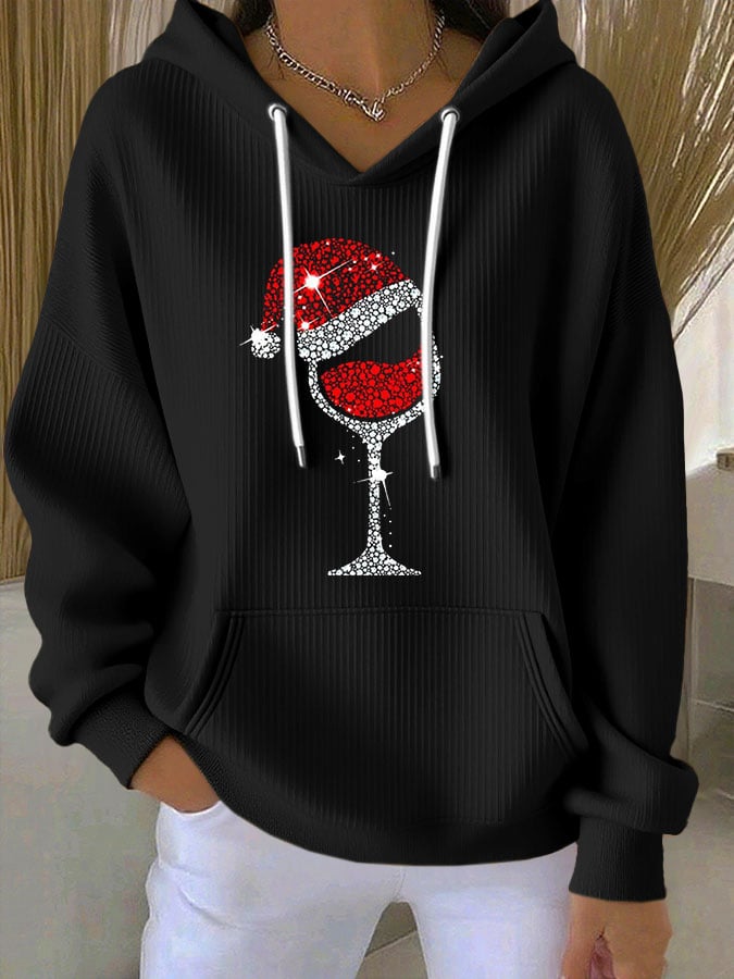 Women's Casual Christmas Pink Santa Claus Hoodie