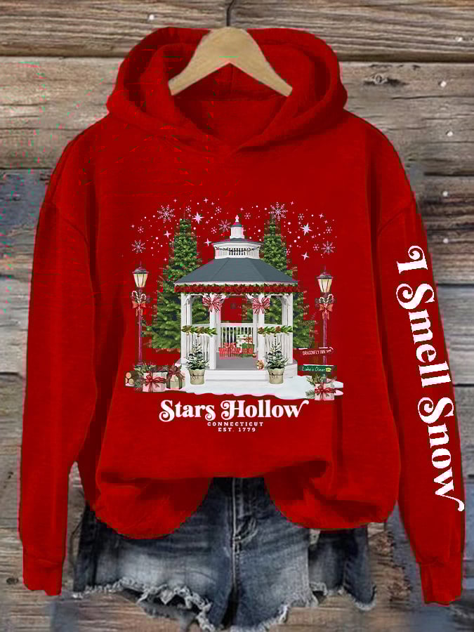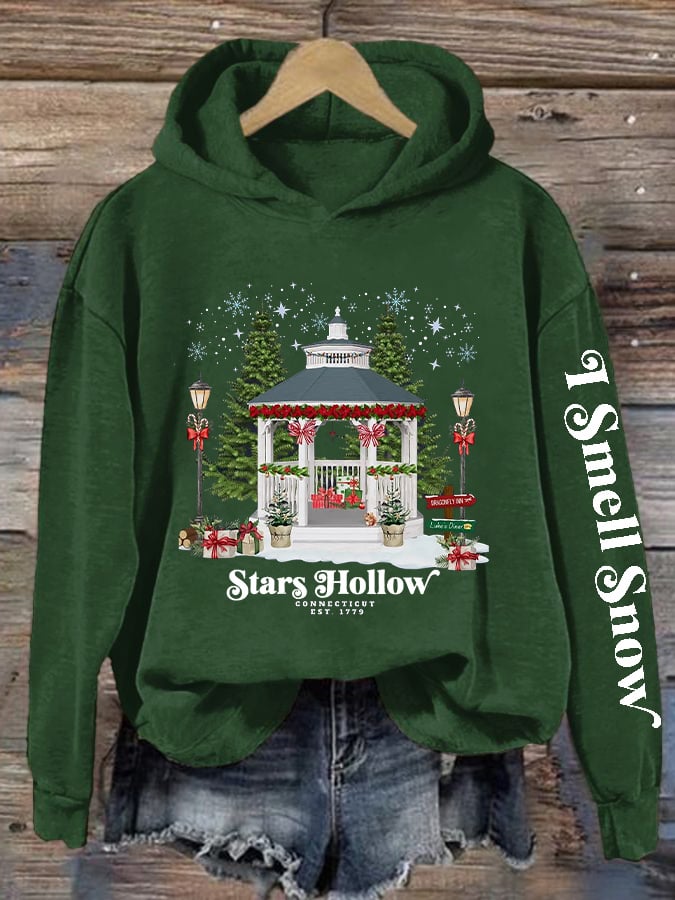 Retro Christmas Stars Hollow Connecticut Est.1779 I Smell Snow Print Hoodie