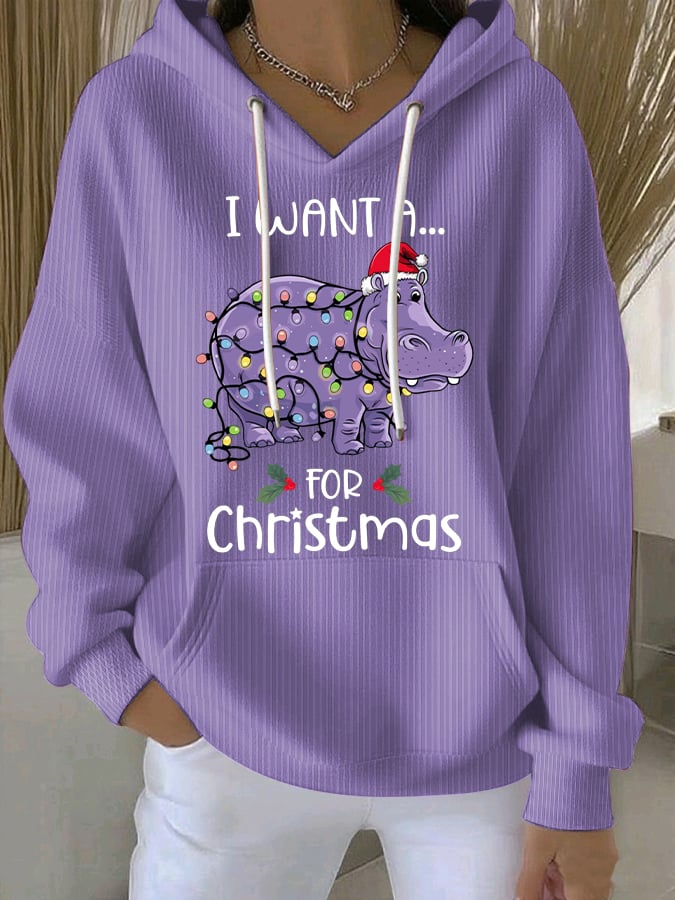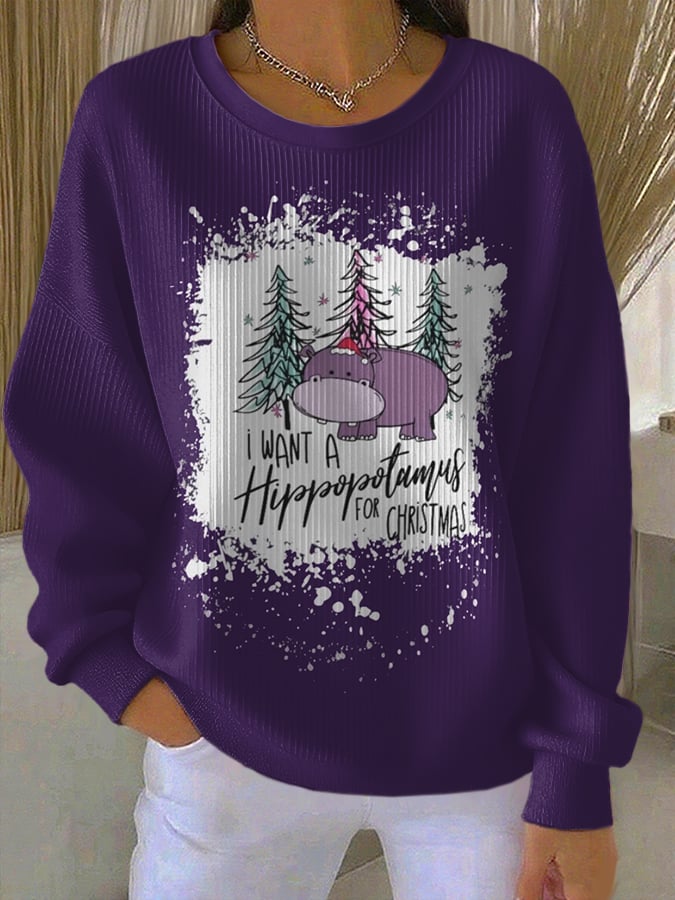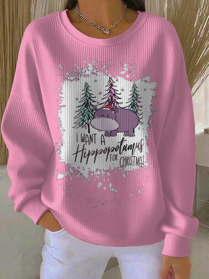 Women's I Want A Hippopotamus For Christmas Print Casual Sweatshirt