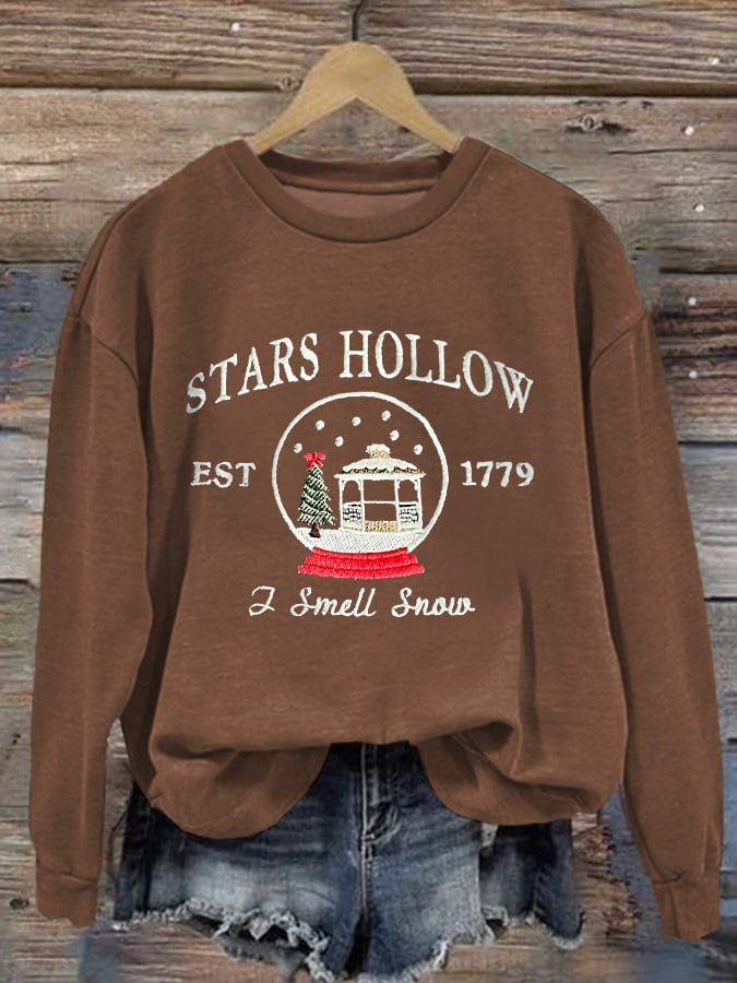 Retro Christmas Stars Hollow Est 1779 I Smell Snow Print Sweatshirt