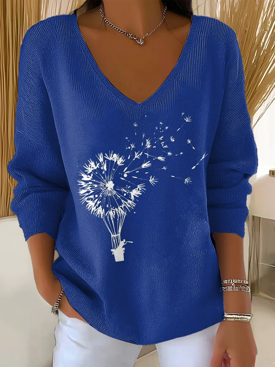 Dandelion Vintage Art Print Casual V-neck Pullover Sweater