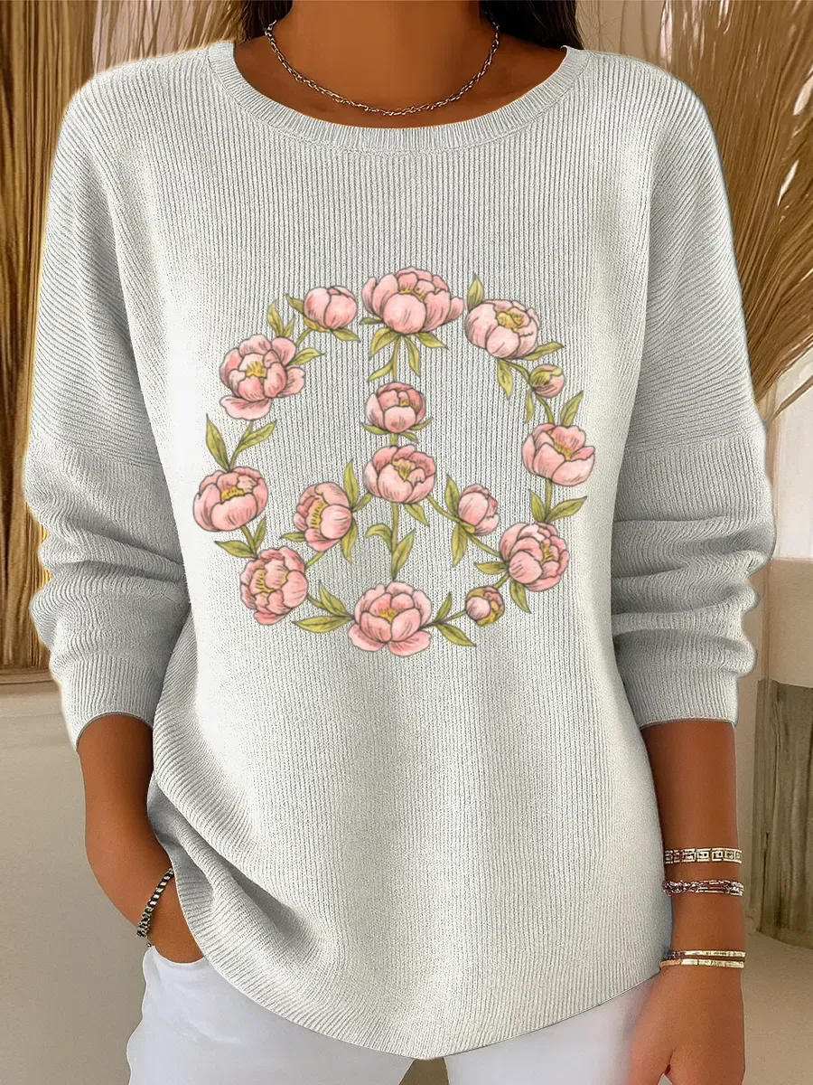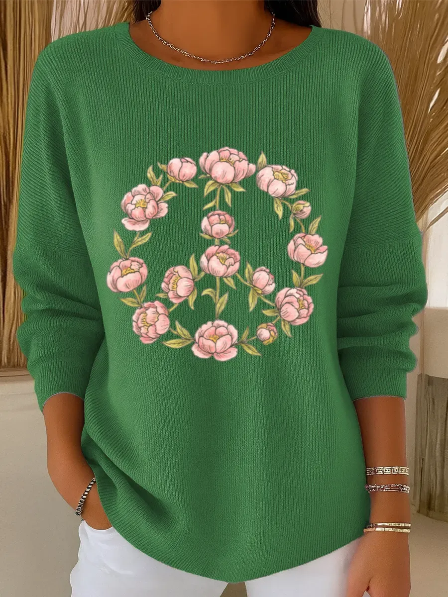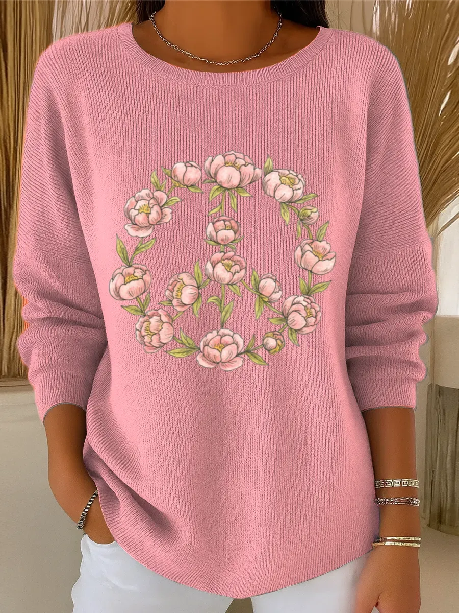 Peace And Love Vintage Art Print Casual Pullover Sweater