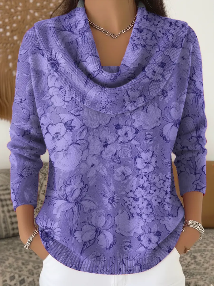 Purple Alzheimer Awareness Art Print Casual Knitted Sweater