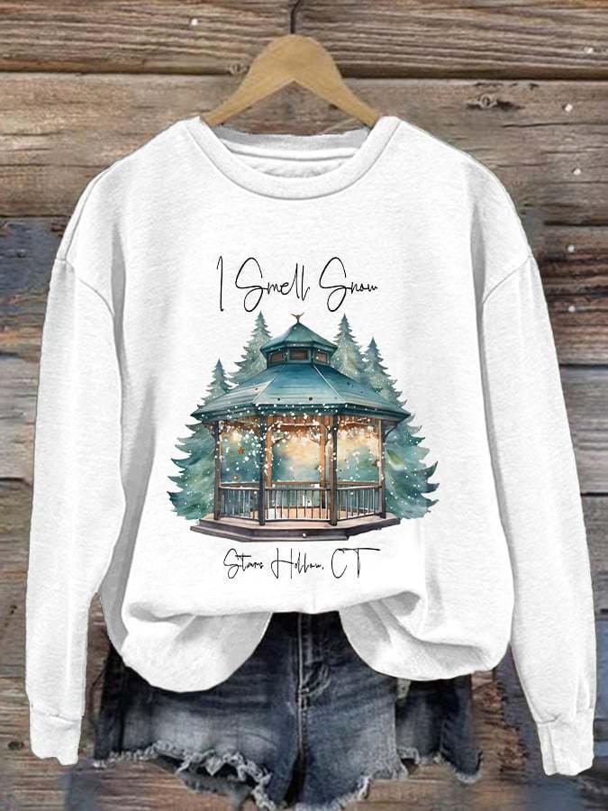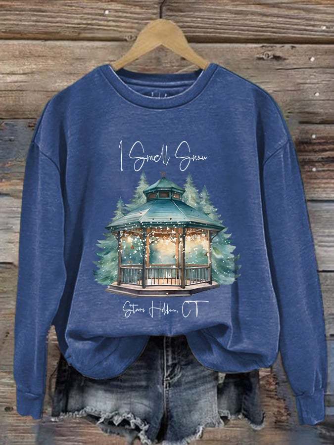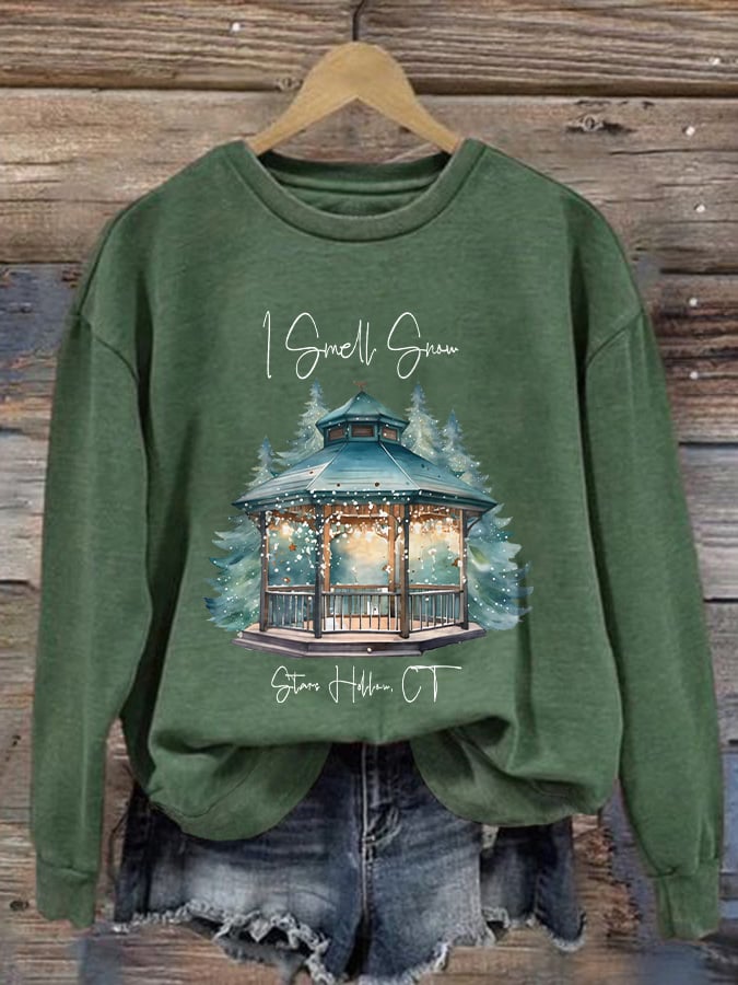Retro Christmas I Smell Snow Stars Hollow Print Sweatshirt