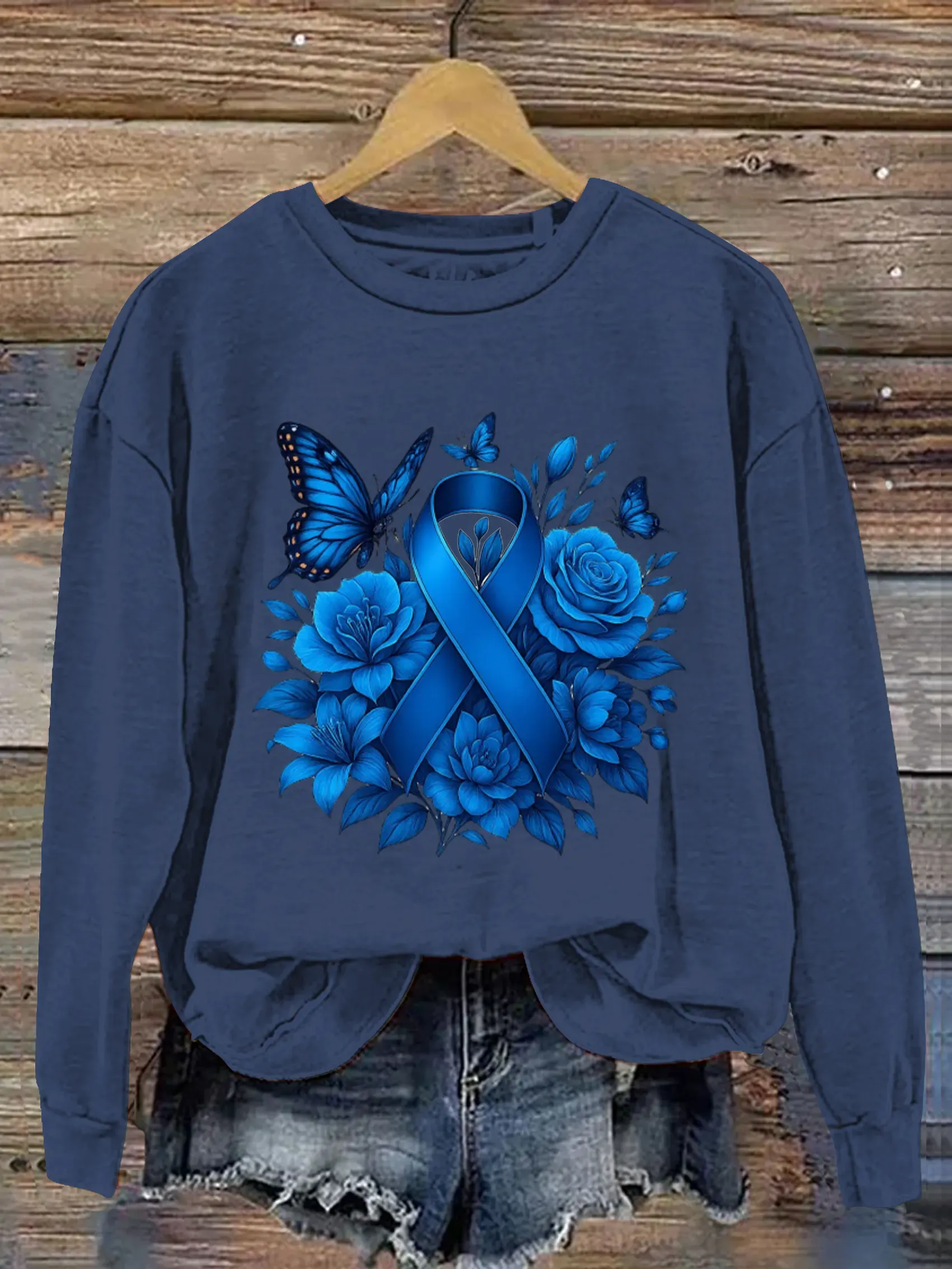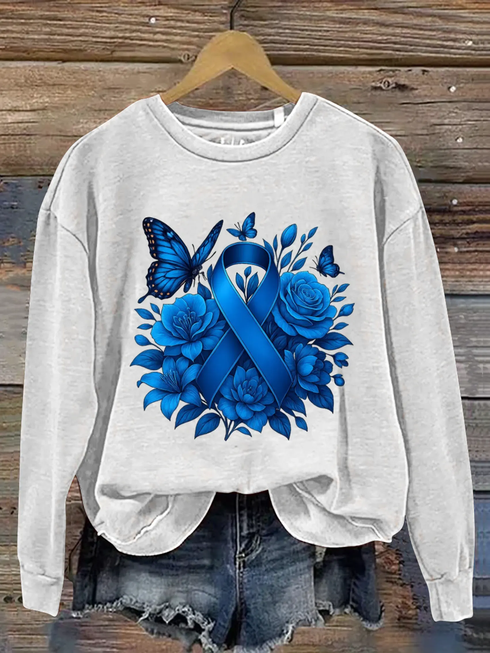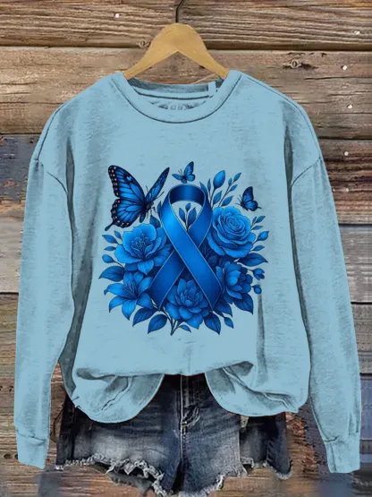 Women's Colon Cancer Awareness Vintage Art Print Casual Sweatshirt