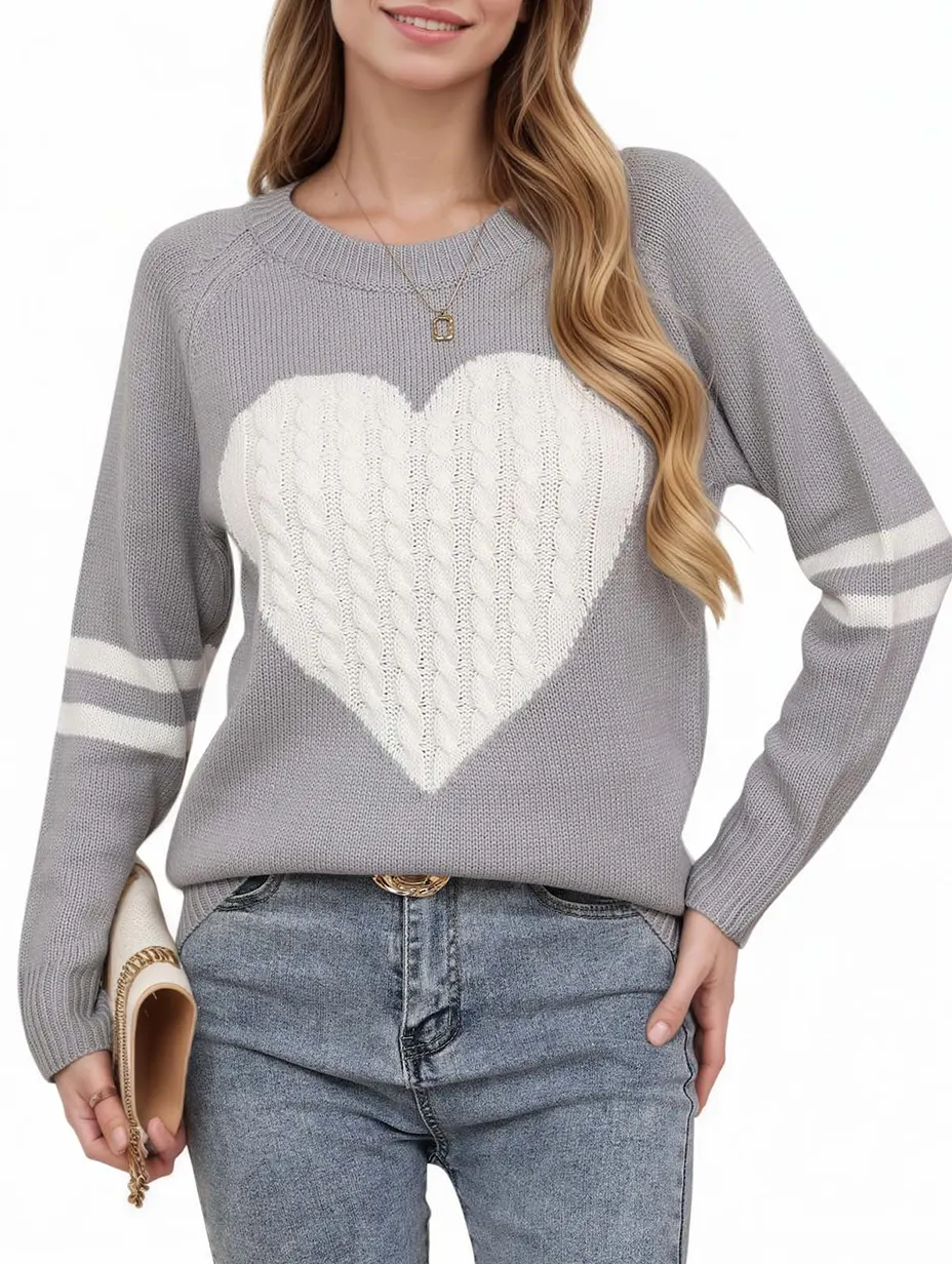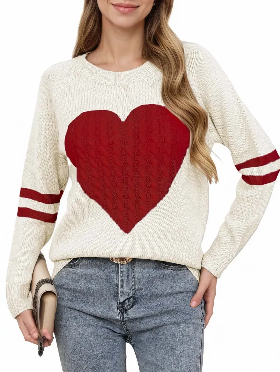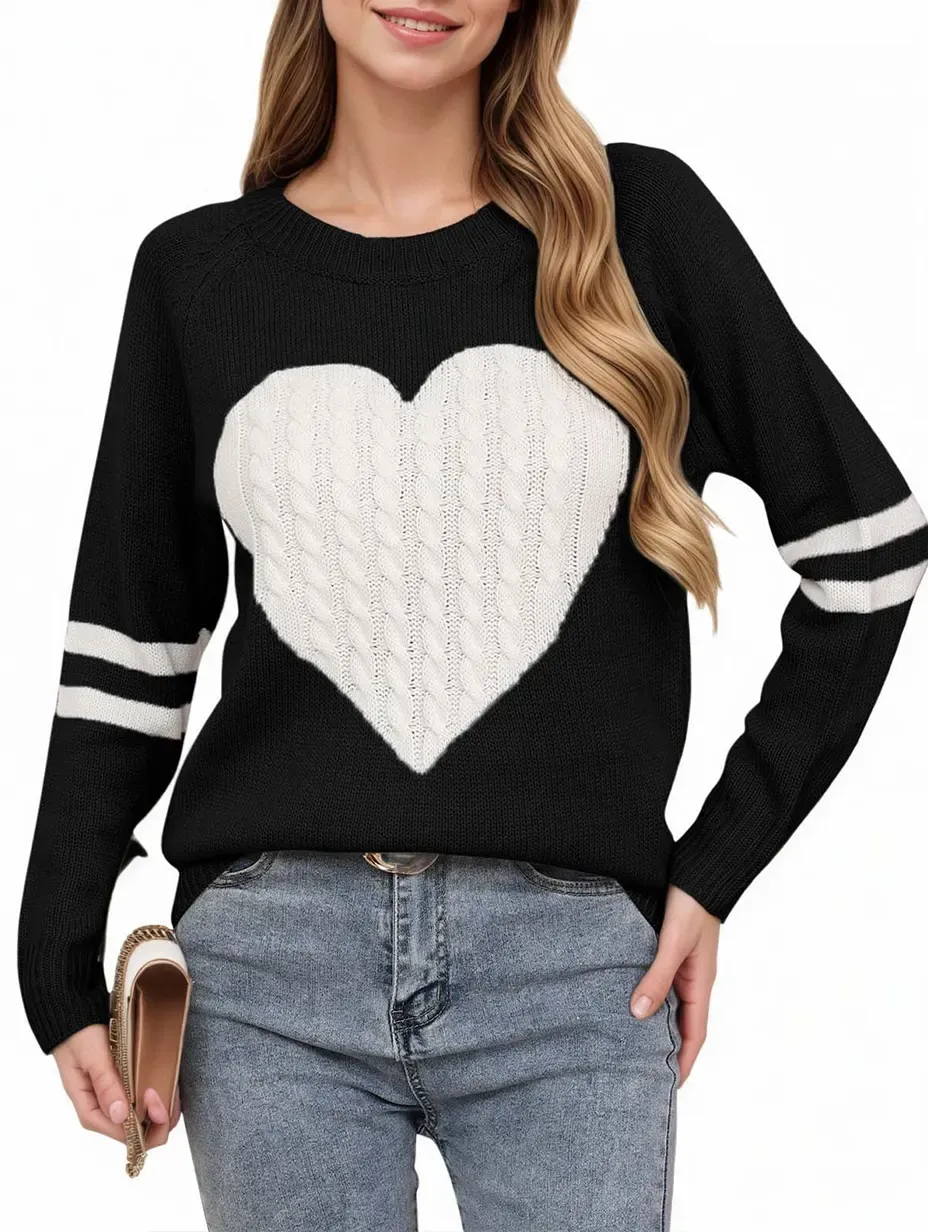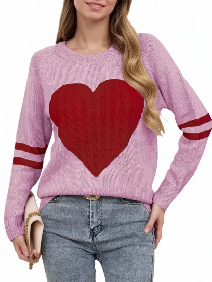 Women's Heart-pattern Art Print Crew Neck Long-sleeve Sweater