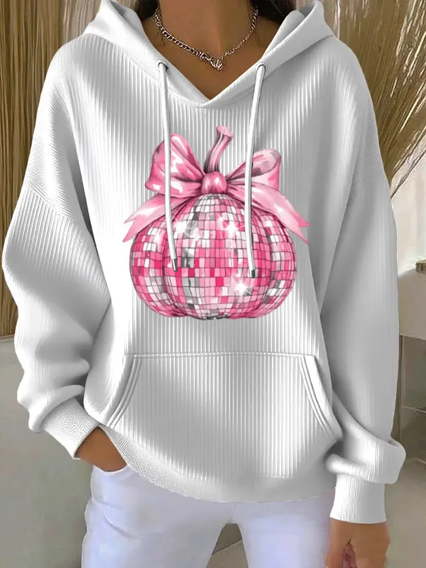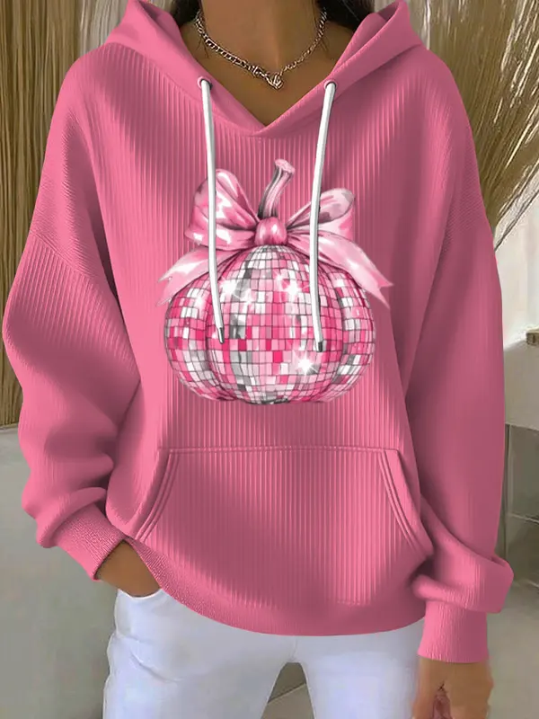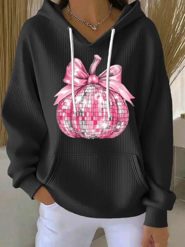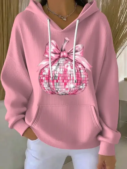 Women's Pink Art Breast Cancer Awareness Print Casual Hoodie Sweatshirt