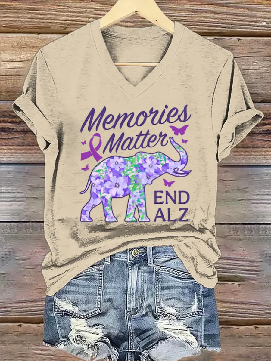Women's Purple Alzheimer Awareness Art V-neck Casual T-Shirt