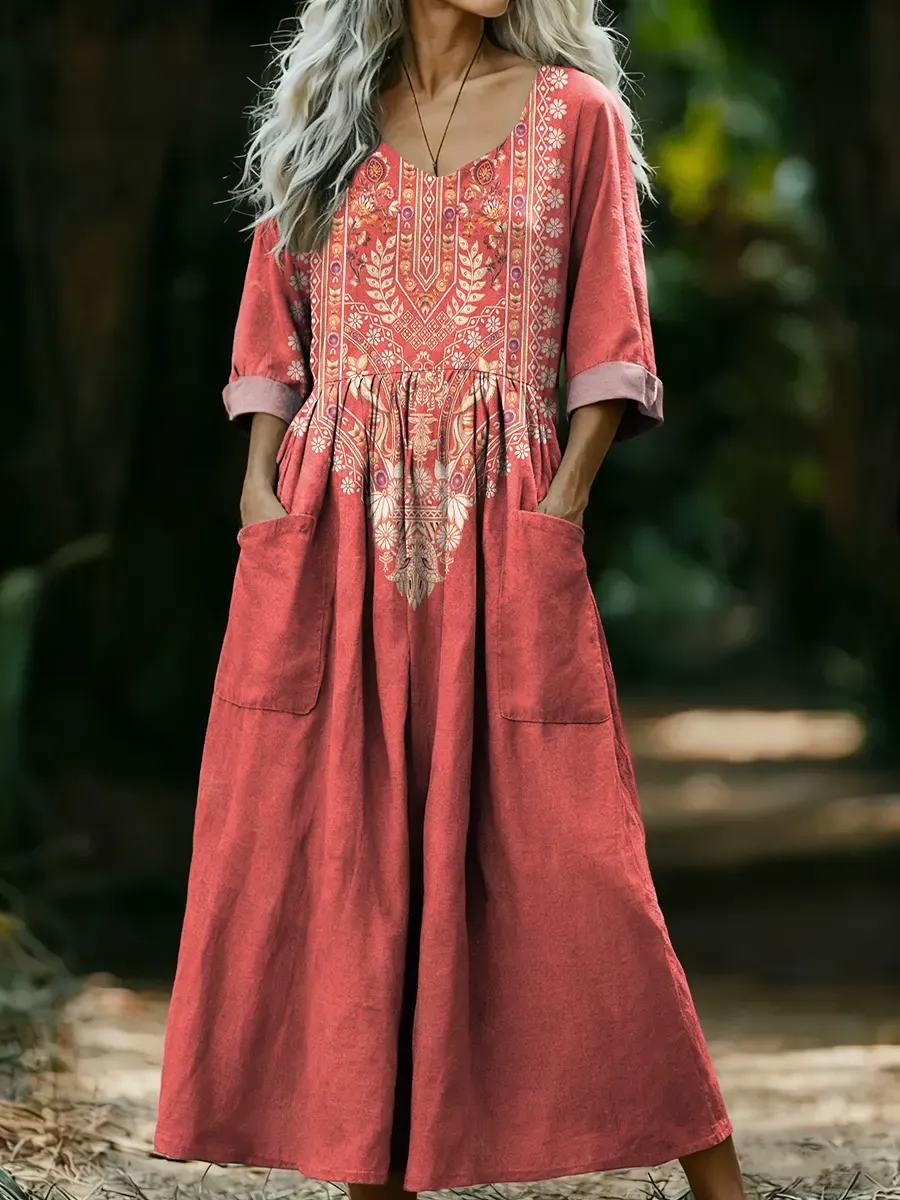 Shirt Length: RegularSleeves Length:3/4 SleeveCollar: Round CollarMaterial: 100%CottonMaterial Stretch: No StretchPocket :Side poctketWeight: 0.300kgPackage: 1 x Dress