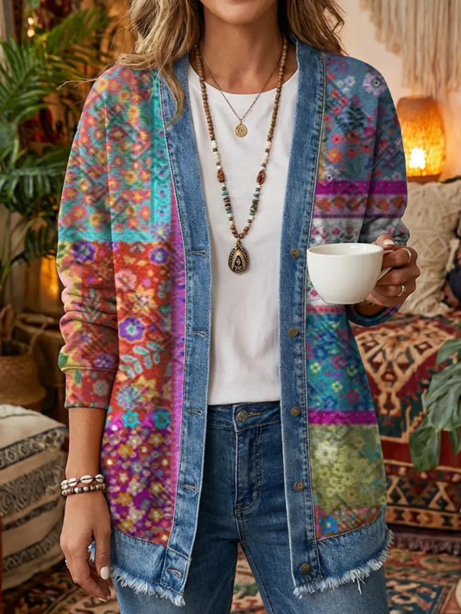 Women's Vintage Ethnic Floral Pattern Art Print Casual Long-sleeve Shirt Jacket