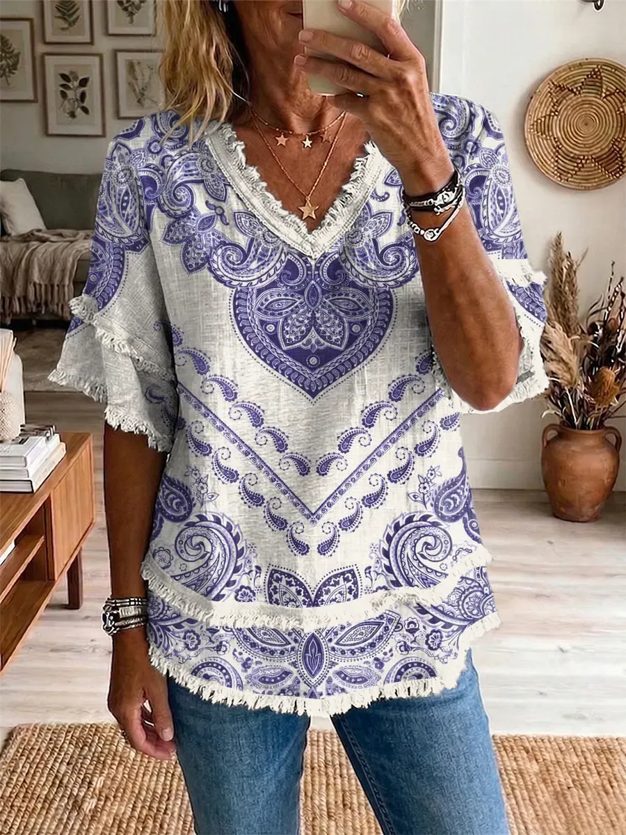 Ethnicity Bohemia Totem Women's Art Casual Patchwork V Collar Shirt