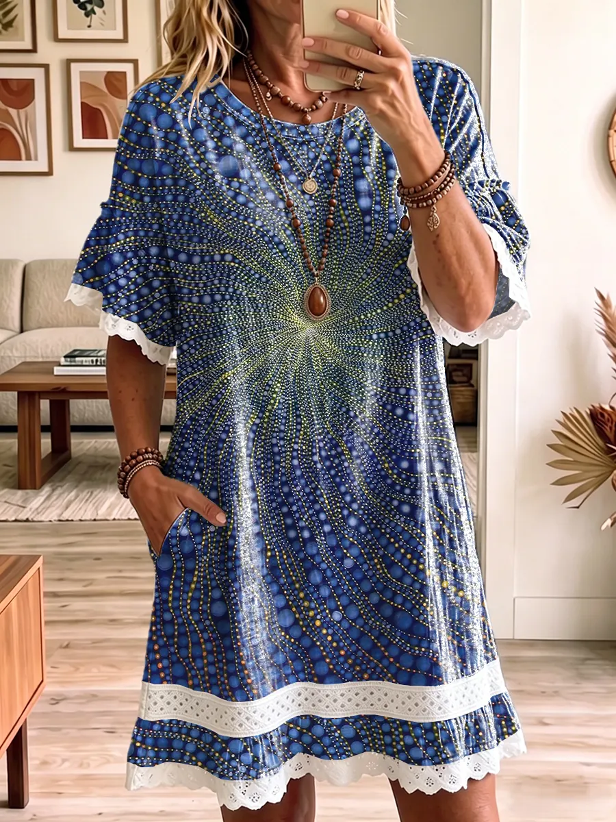 Vintage Ethnicity Abstract Geometry Women's Art Print V-neck Patchwork Cotton Dress