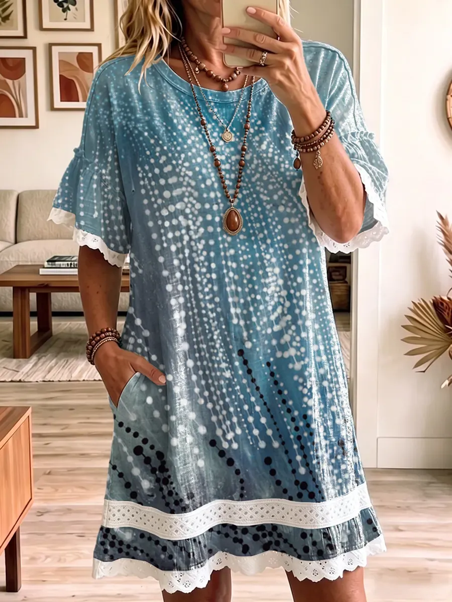 Vintage Geometry Circle Pattern Women's Art Print V-neck Patchwork Cotton Dress