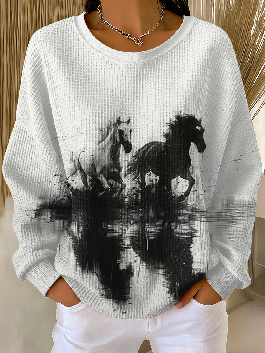Vintage Horse Art Print Crew Neck Sweatshirt
