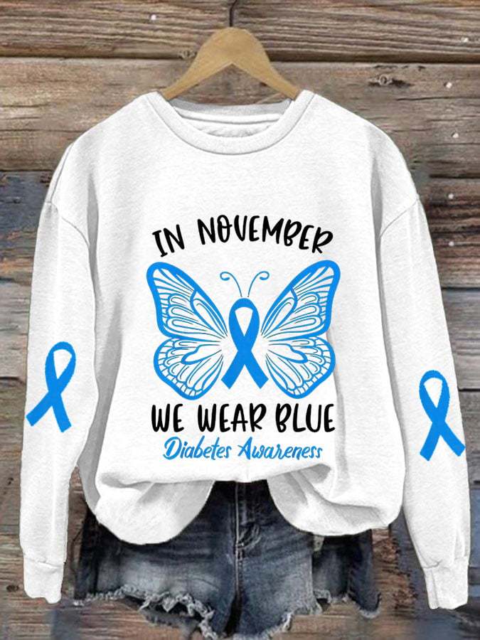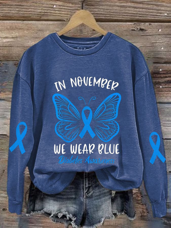 Women's In November We Wear Blue Diabetes Awareness Print Casual Sweatshirt
