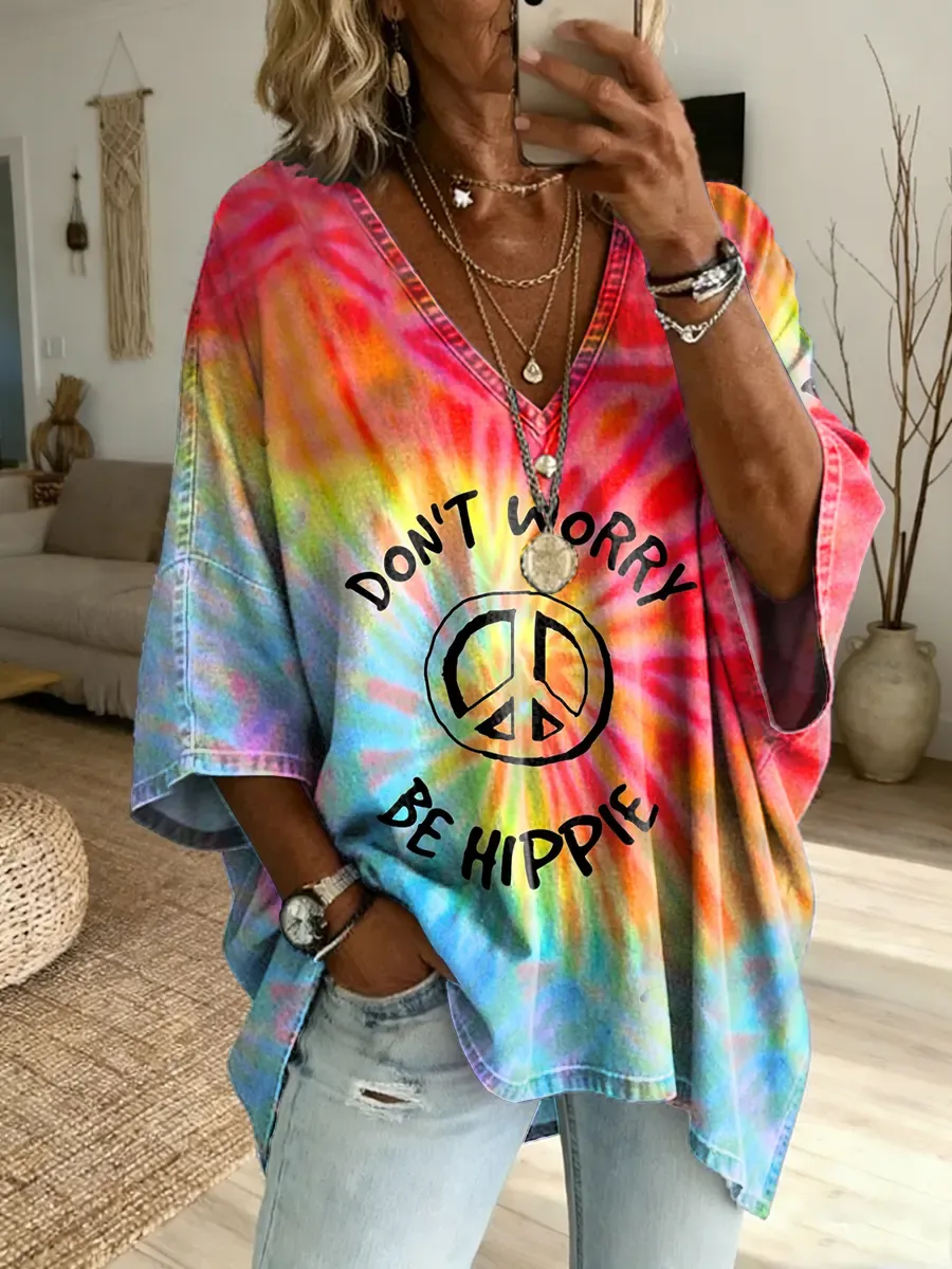 Women's Retro-Style Hippie Tie-Dye Art Print Casual Washed Cotton Denim Jacket