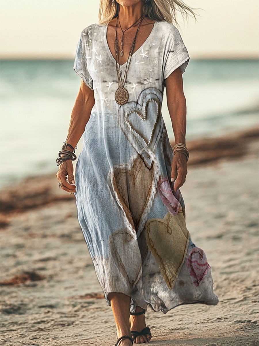 Women's Valentine's Day Vintage Heart Pattern Print Pocket Cotton Dress