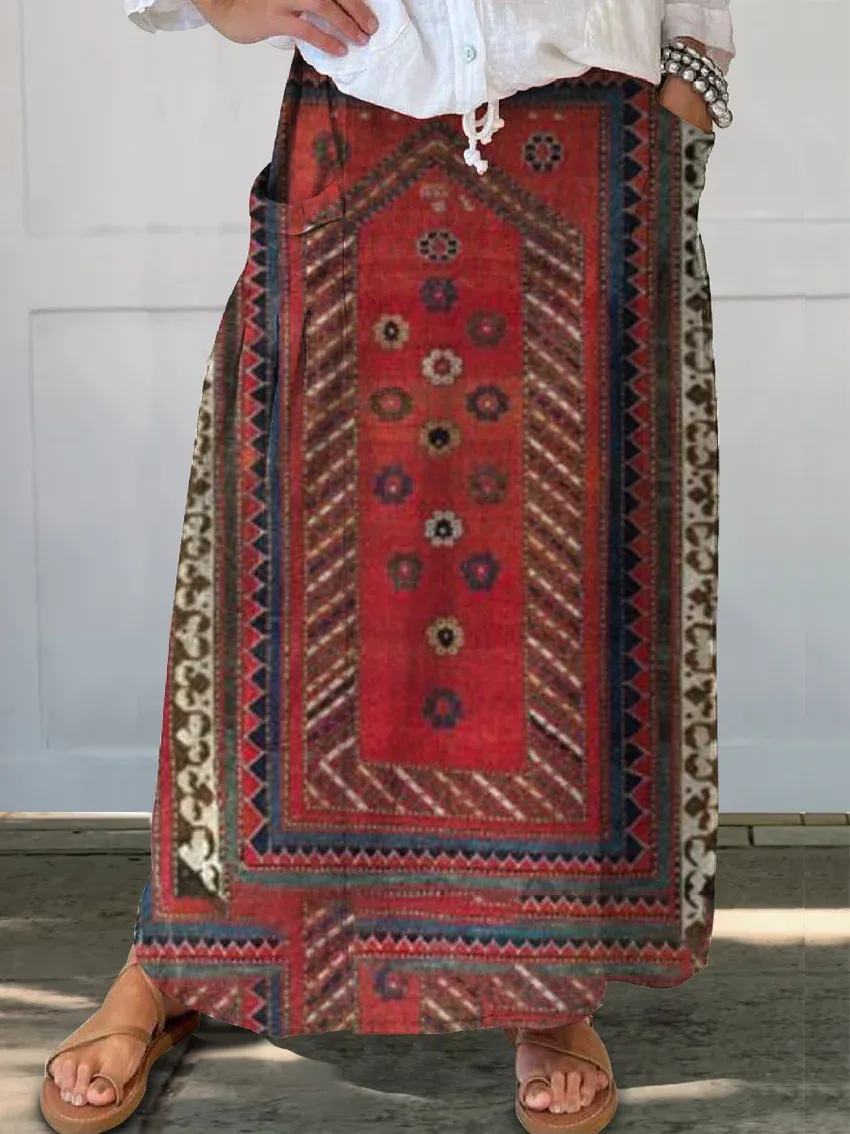 Women's Vintage Ethnic Style Tattoo Pattern Art Print Short Sleeve Pocket Cotton Linen Dresses
