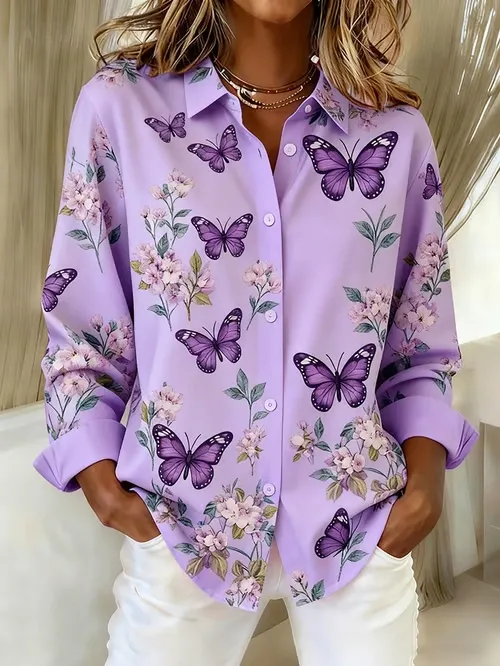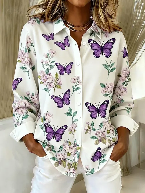Butterfly Vintage Art Print Casual Cotton Shirt