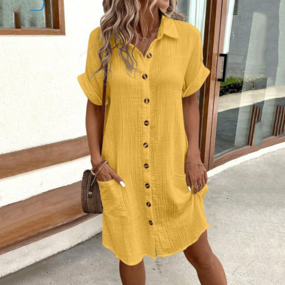 SPU: XH-208583-YJFabric Name: 95% Cotton-5% NylonPattern: Solid ColorProcess: PocketStyle: SimpleLength: Mid-LengthCollar: LapelPopular Elements: ButtonSleeve Type: Short SleeveOccasion: DailyTheme: SummerNOTE: If you are not sure, please choose a larger size. If you have any doubts about this product, we suggest you contact our customer service team. Due to the color difference between the screens of different electronic devices (computers, mobile phones or ipads), especially the CRT screen and the LCD screen, the color of the item may be slightly different from what you see in the photos, please take the actual product as the standard.SizeBustLengthcminchcminchS9637.49035.1M10039.09135.5L10641.39235.9XL11243.79336.32XL11846.09436.73XL12448.49537.1Due to manual measurement, there may be an error of 1-3cm