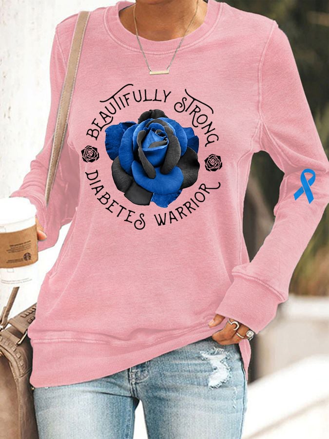 Women's Beautifully Strong Diabetes Warrior Blue Rose Sweatshirt