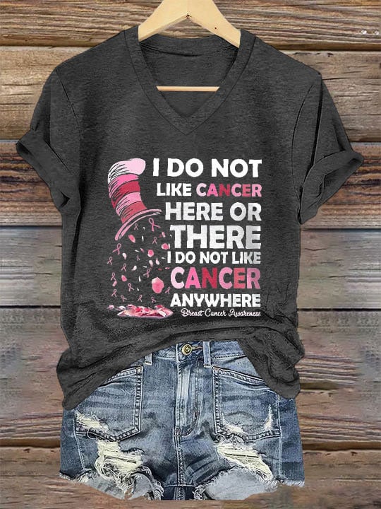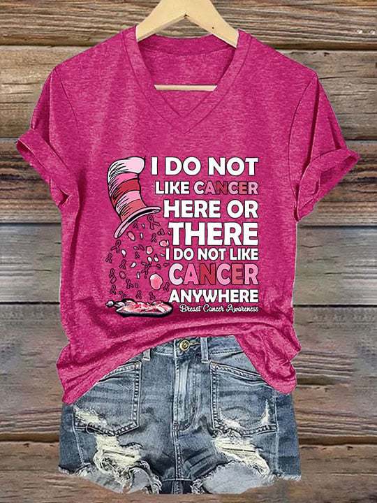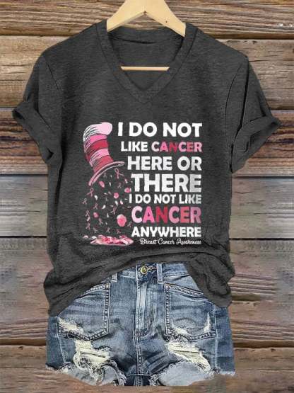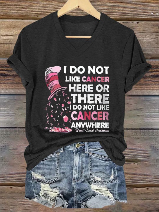 ❤️Warm Gift❤️Women's I Do Not Like Cancer Here Or There Printed V-Neck T-Shirt