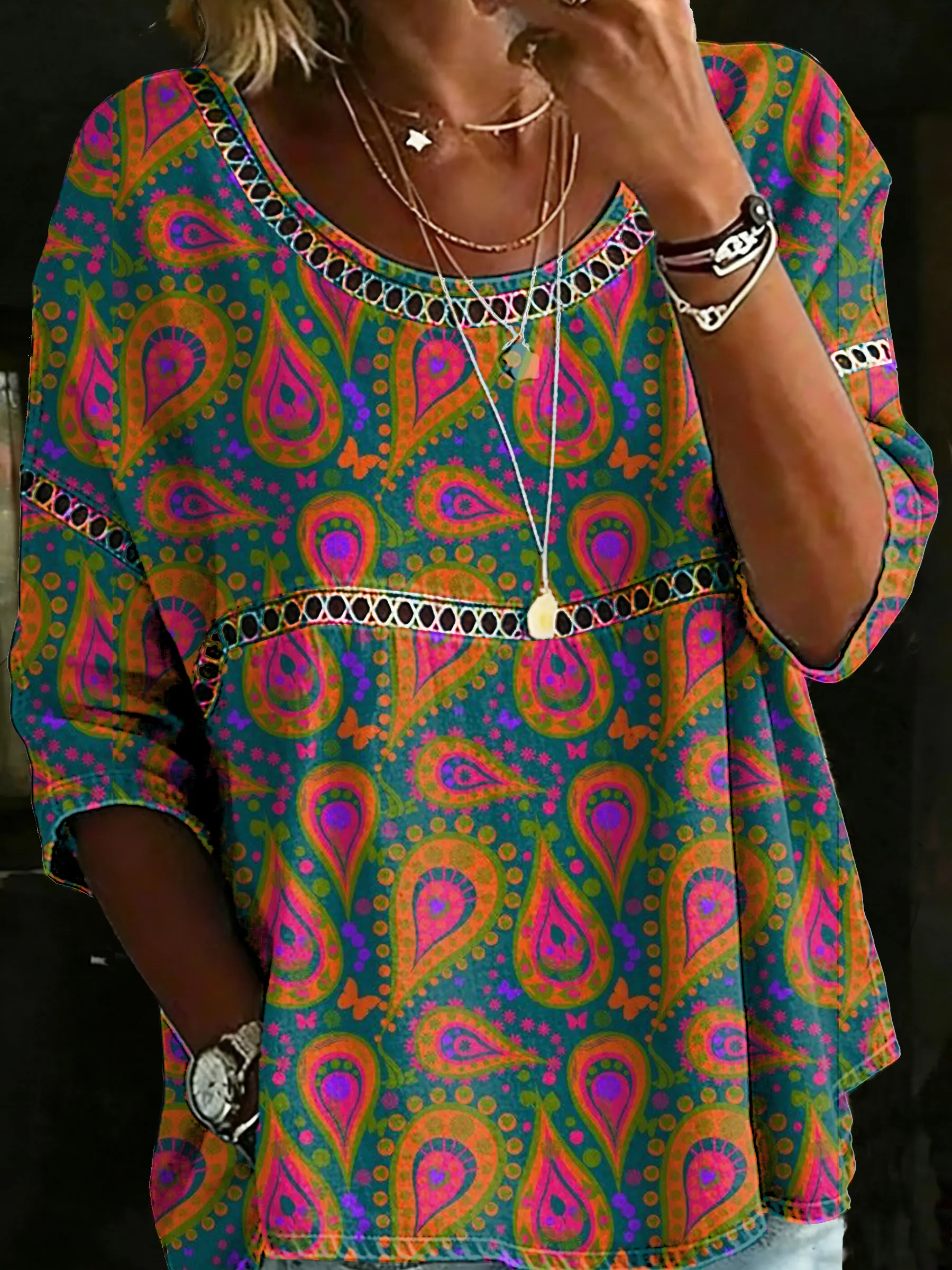 Women's Vintage Ethnic Casual Loose Denim Blouse Shirt