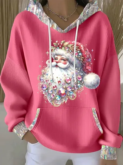Retro Santa Claus Print Casual Hoodie Sweatshirt