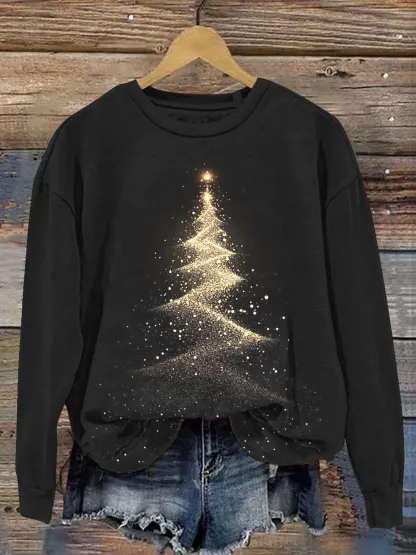 Vintage Christmas Tree Art Print Casual Sweatshirt