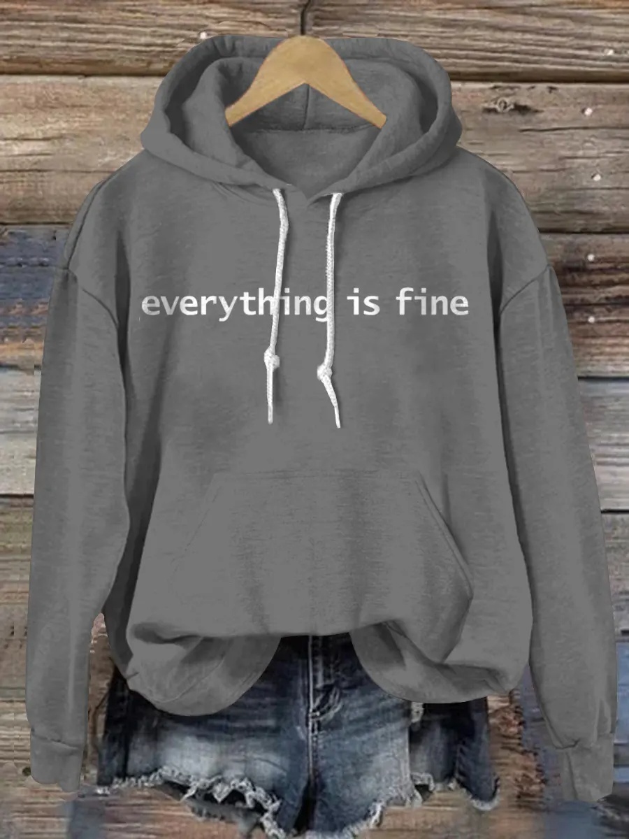 Vintage Everything Is Fine Print Casual Hoodie Sweatshirt